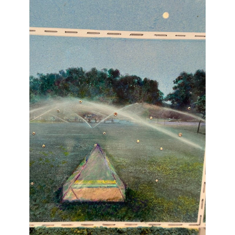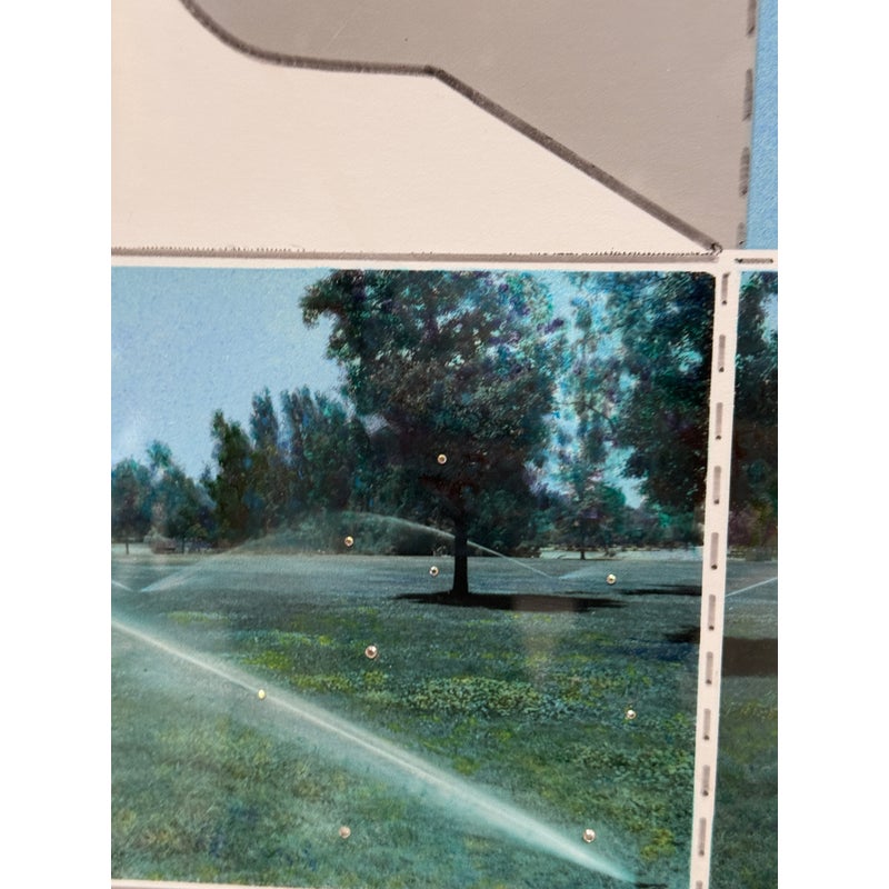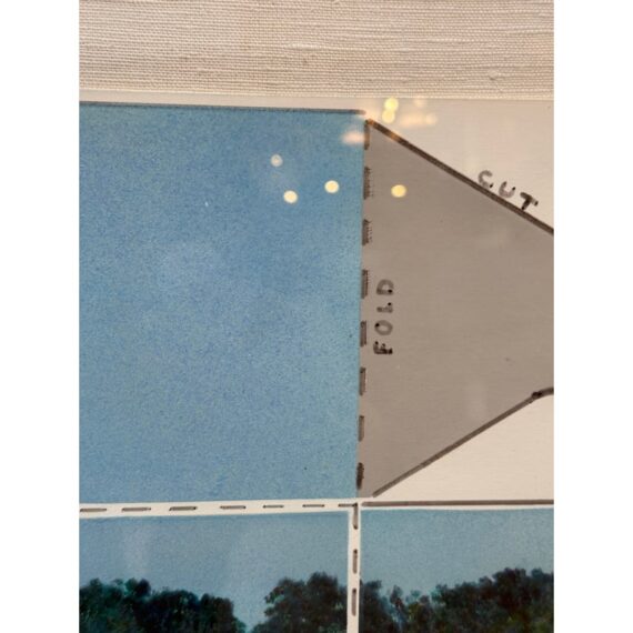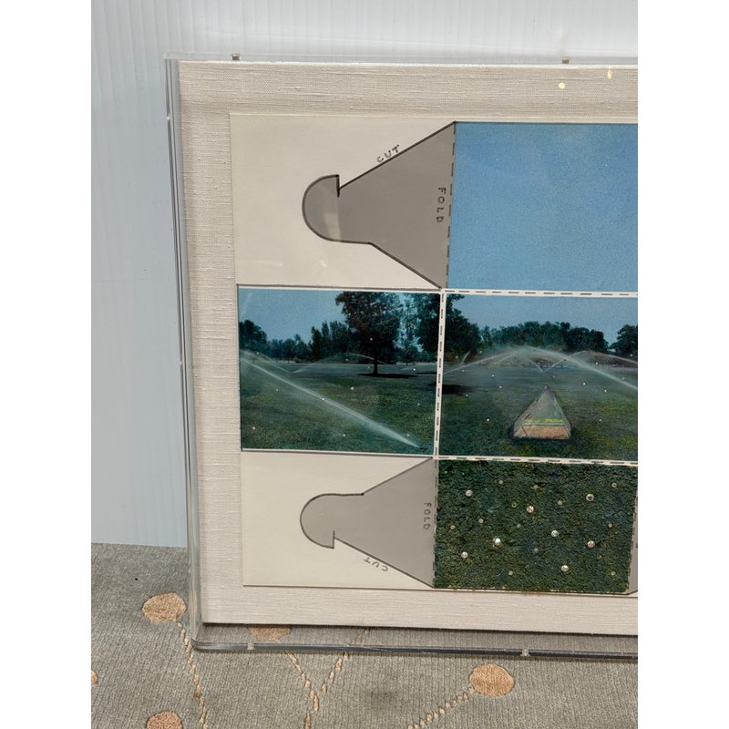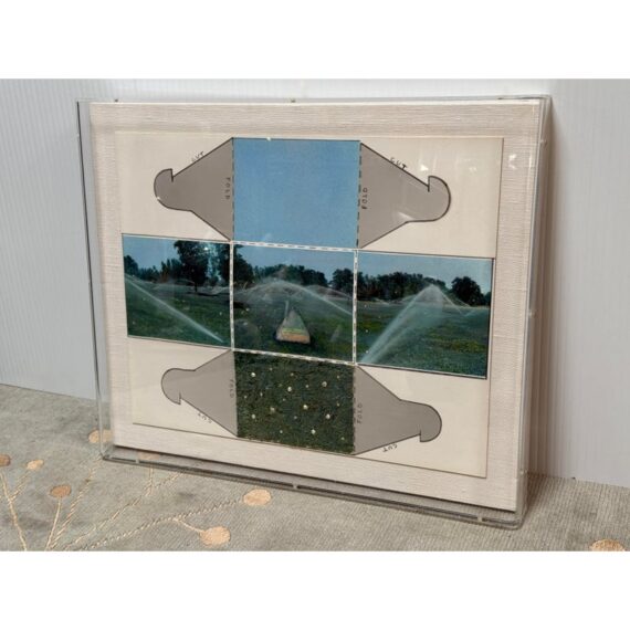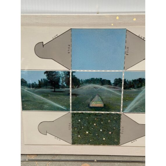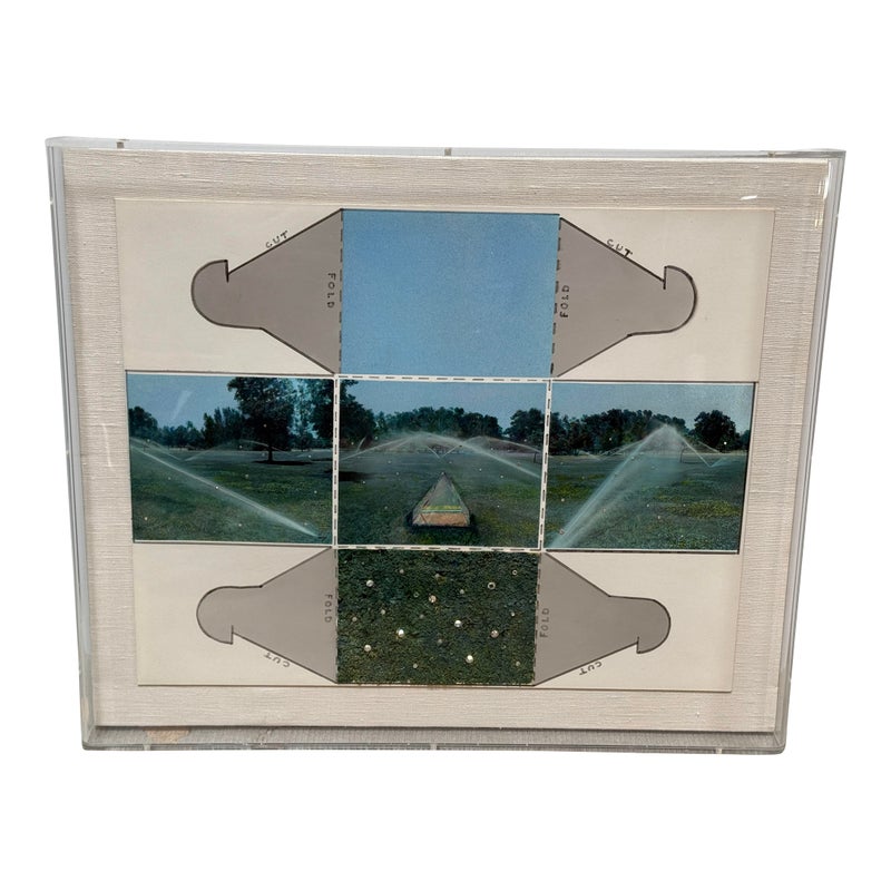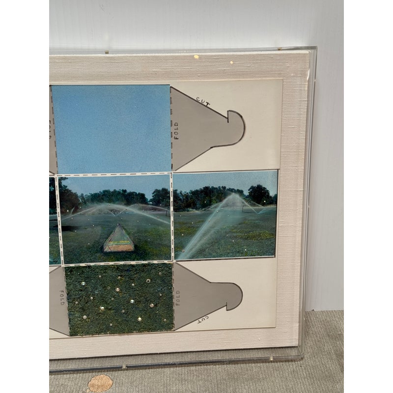 Design Plus Gallery presents an Original Mix Media by Sharon Boysel (American 1939-2022). The art work is a template of a cube pattern with images that fold into a cube of a golf course. Great gift for an art or golf enthusiast. Has been custom framed within an acrylic box. Is in good condition, with minor wear for its usage.