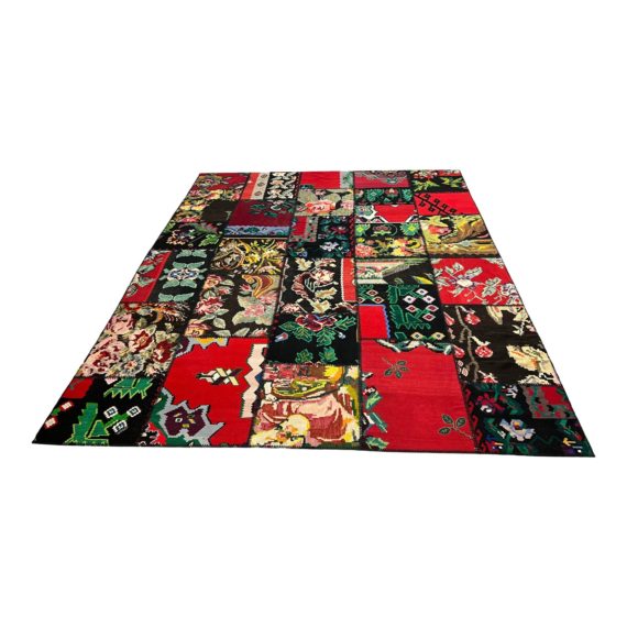 Design Plus Gallery presents the IKEA Silkeborg Flatwoven Handmade Rose Motif Rug. Ikea’s oriental rugs are handmade and a result of traditions combined with the weaver’s individual taste. No two rugs are the same.This rug is unique since it’s created from patches of old traditional handmade Turkish rugs. The old patches are washed and stitched together to crate a new and modern piece of art. Needs a professional cleaning, visible usage.