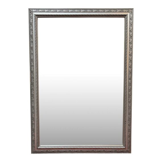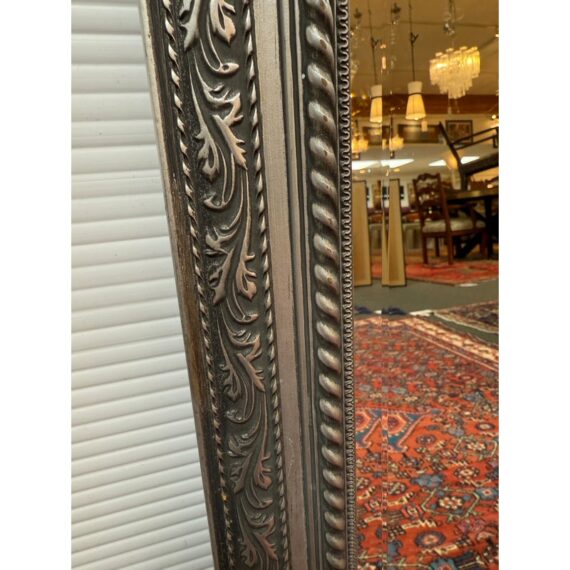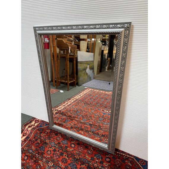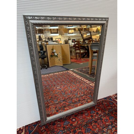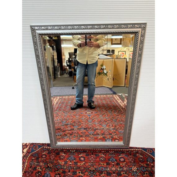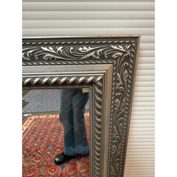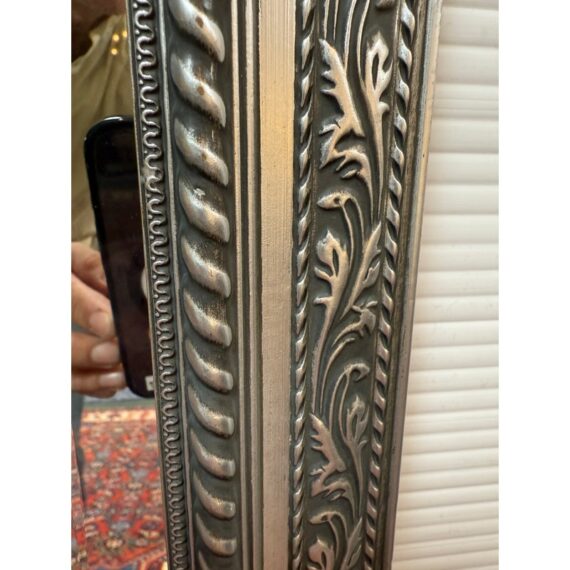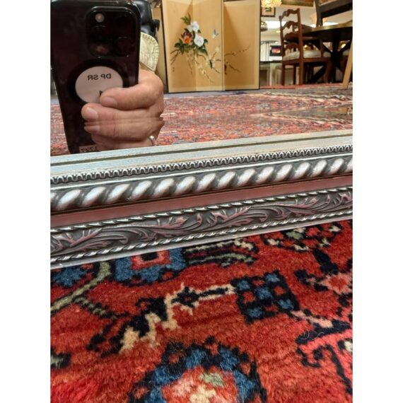 Design Plus Gallery presents a Decorative Wall Mirror with a Silver Finish. The framed mirror has a neoclassical style but done with a gilt of silver, rather than gold. It has extraordinary detail of various molding taking on different sizes and technique to create a handsome display for the mirror. It is in good condition with minimal visible wear for its usage.