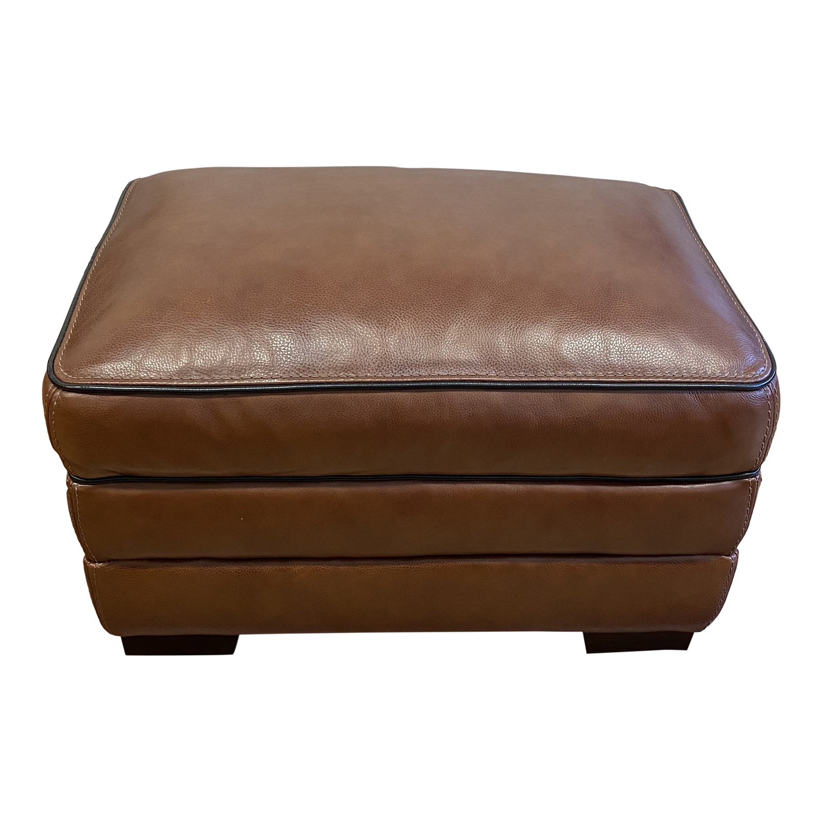 Design Plus Gallery presents a Macco Leather Ottoman by Simon Li Furniture. Contrasting welt accented sofa collection; Two over two seating configuration; Basket woven webbing seat suspension; Dacron wrapped seat cores. Upholstered in a Stampede Cognac Leather.