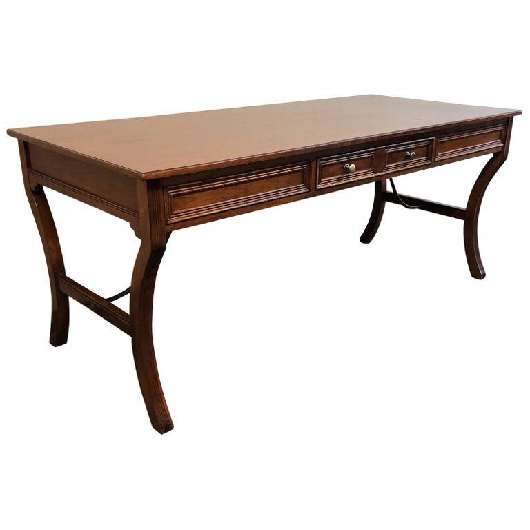 Design Plus Gallery presents wooden desk by Sligh. The desk has simple yet elegant lines. There is one middle drawer.