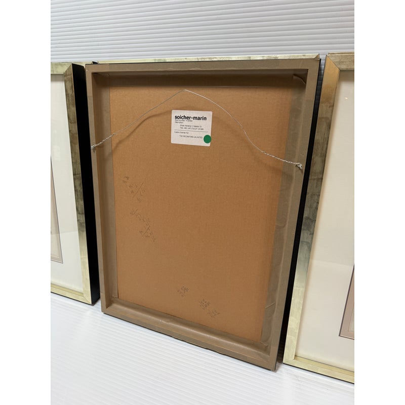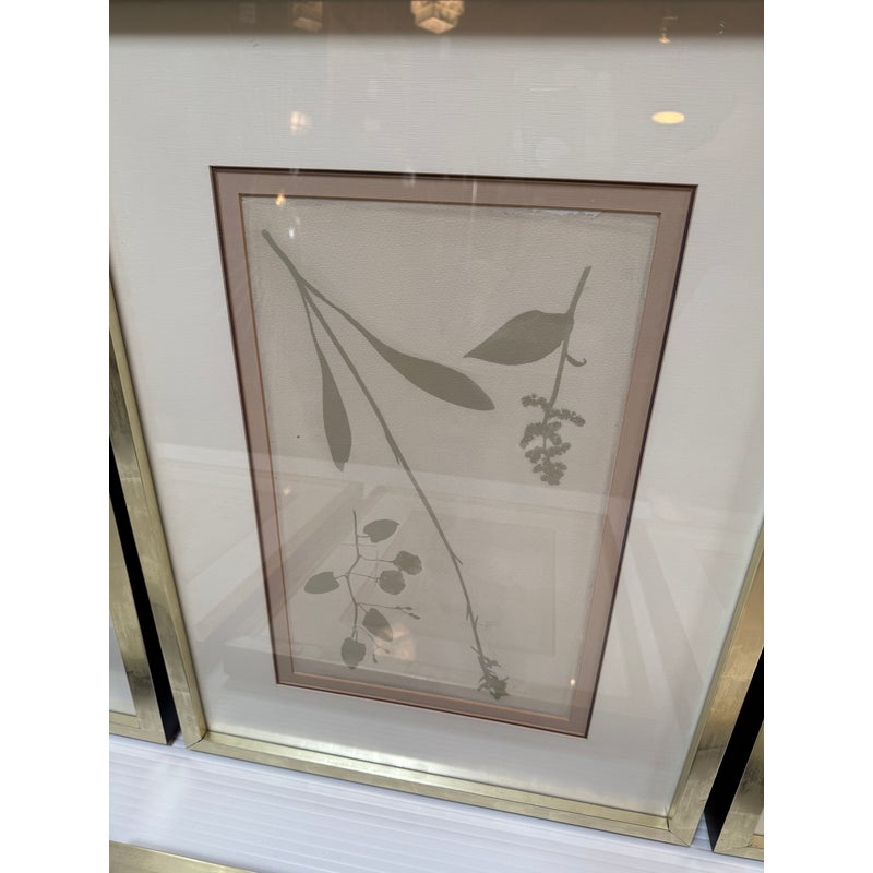 Design Plus Gallery presents the Complete Series of “Herberia in Celedon” from Soicher Marin. Soicher Marin is a respected American art house specializing in museum‑quality reproductions sourced from rare archives, botanical studies, and historic collections. Their “Ghost Herbaria” series reinterprets antique herbarium plates through a modern lens, emphasizing subtle tonal work and refined composition. Each print is produced using high‑end giclée technology and framed with handcrafted molding, reflecting the studio’s commitment to craftsmanship and design excellence. The inclusion of the entire series is sought after by collectors and interior designers for their balance of natural history and contemporary style. They are all in good condition for their usage with minimal wear.