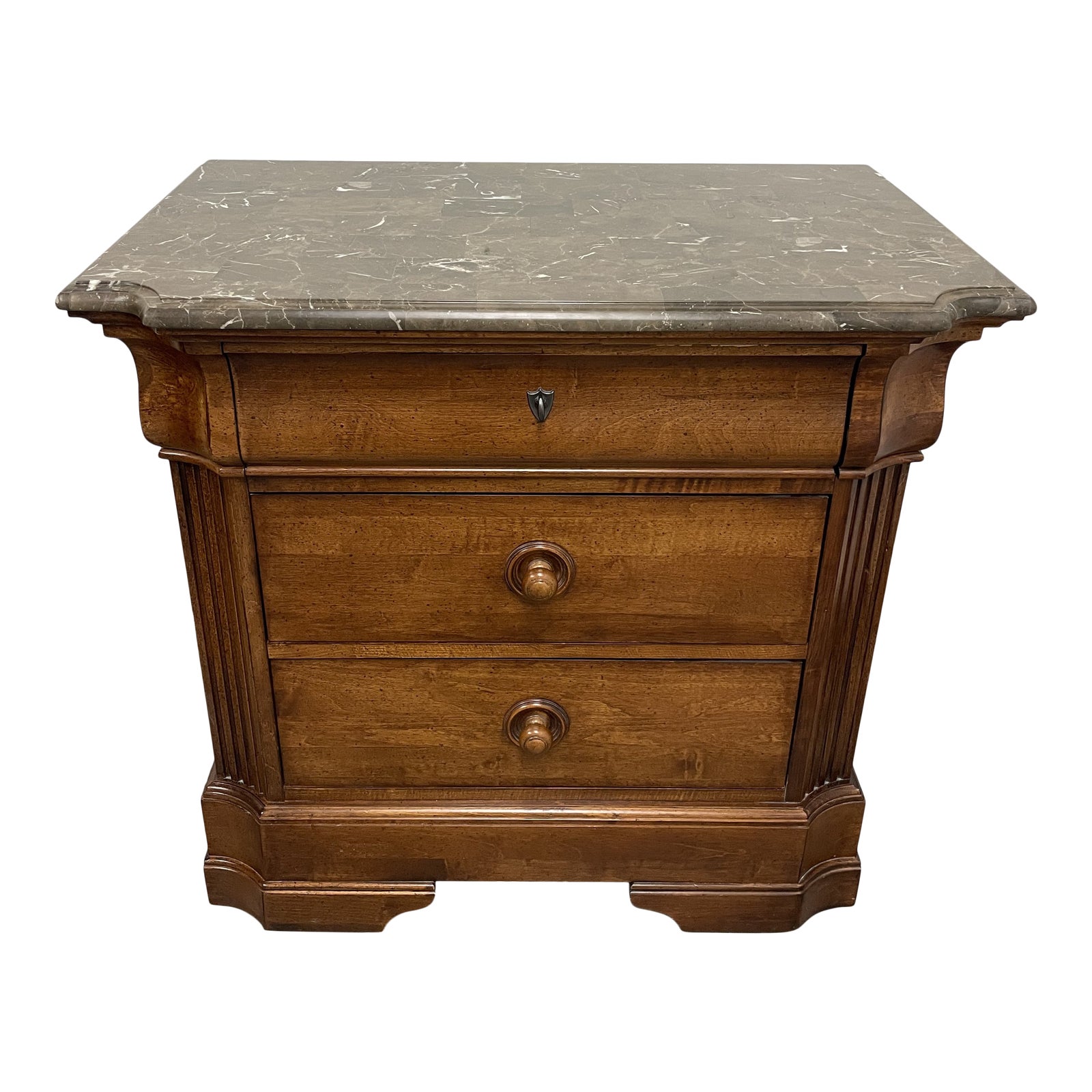 Design Plus Gallery presents a Traditional Dresser by Stanley Furniture. Classic details and a beveled marble tile-look top creates elegant style, three roomy drawers with turned wood knobs create great function. Made in USA.