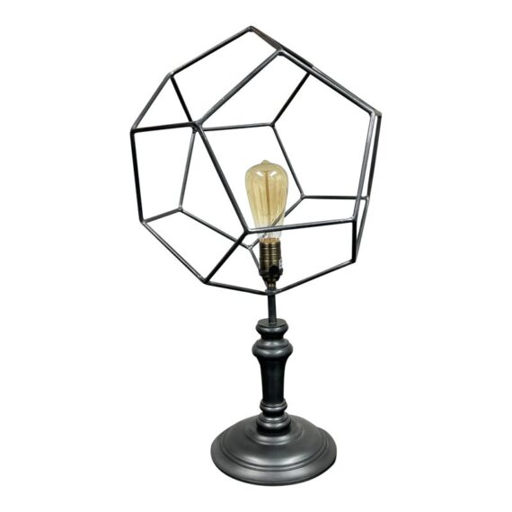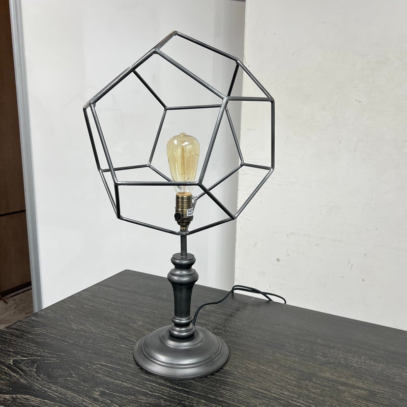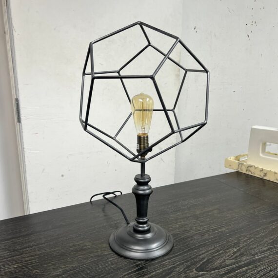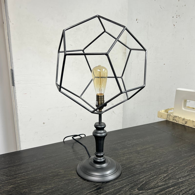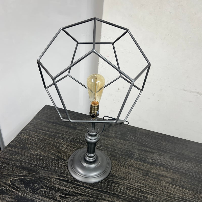 Design Plus Gallery presents a Stella Cage Table Lamp by Restoration Hardware. The lamp has a nickel finish with a cool effect of industrialized metal cage overall the exposed bulb. The lamp has minimal signs of surface wear for its overall age + use.