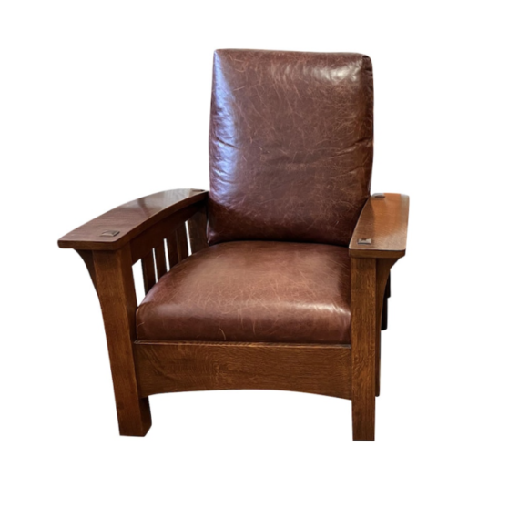 Stickley Furniture Bow Arm Morris Reclining Oak + Leather Chair.. Original Price: $7,954