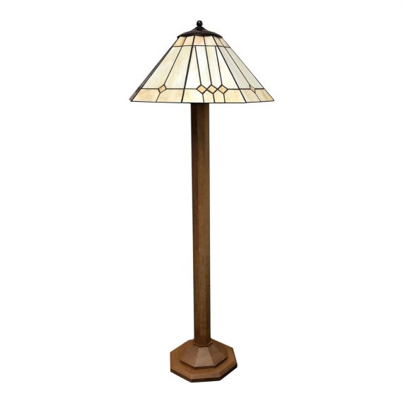 Design Plus Gallery has a floor lamp by Stickley. The model number is 89-037-8 from the Mission Collection. The octagonal wooden base is Oak. The shade is glass. A great addition to light up any room.