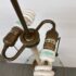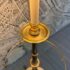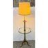 Design Plus Gallery presents a Vintage Stiffel Brass Floor Lamp with integrated glass table. Beautiful turned brass column, rising from a tripod base, is accented with an ivory “candle” that holds a double socket with pull chains. The convenient glass round table sports a brass rail to keep your items on the table. Light wear; condition is good for age and use.