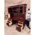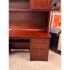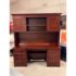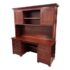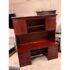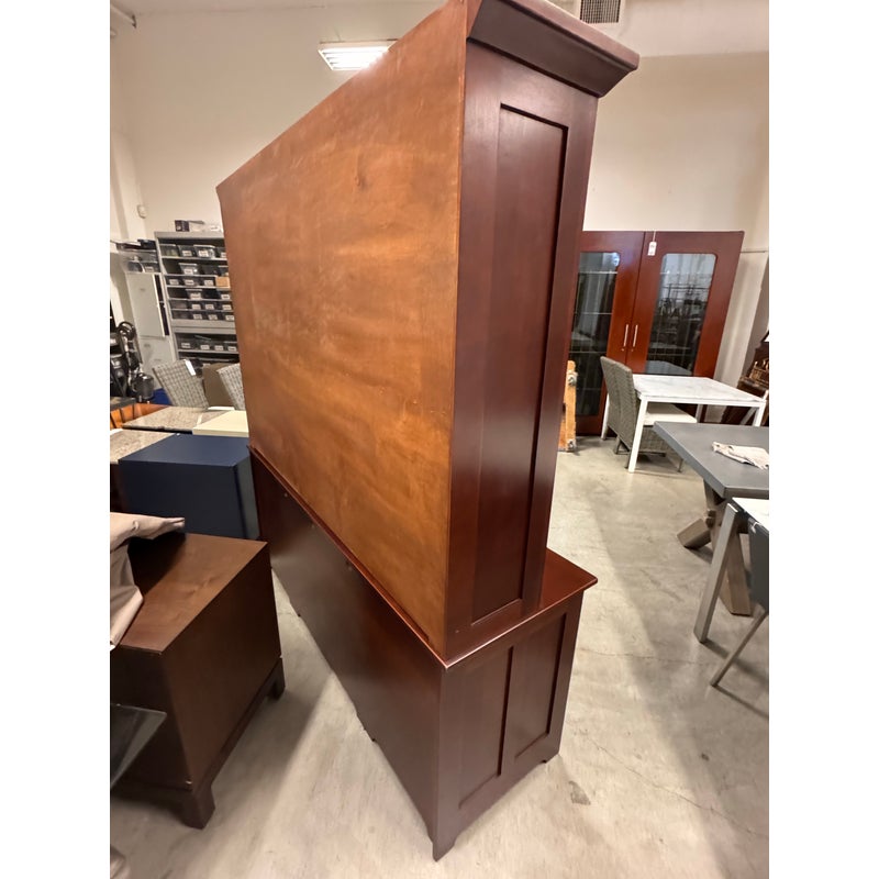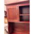 Design Plus Gallery presents a Desk + Hutch from Stuart David. This piece is rendered in a cherry-toned wood veneer with a broad work surface, an upper hutch with two cabinet doors and an open center shelf, and two lower drawer banks with metal knob pulls. The lower storage includes box drawers and locking file drawers, and the desk is also fitted with pull-out writing slides at both sides. The hutch has a finished back panel and a wide overhead crown, giving the silhouette a tailored and balanced look. Comes with Keys. It is in good condition with visible and minimal wear from usage.