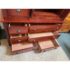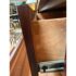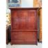 Design Plus Gallery presents a Nauvoo Bedroom Collection Media Armoire by Stuart David. The armoire is a fest to your eyes with all its varying shaped drawers and cubbies. It stands tall with two pieces that separate to easily move and position in your home. This collection focuses on high-quality solid wood construction and was customized with a cherry wood stain and nickel-plated hardware. The lower portion has six drawers of varying widths and similar depth. The top portion has two cabinet doors that open to a sliding tray meant to hide your media when not in use and is on the right side. The left side has a top single door that opens to reveal shelving and two lower drawers. This style of media armoire is no longer in production with the brand and is in good condition for its usage. Made in the USA.