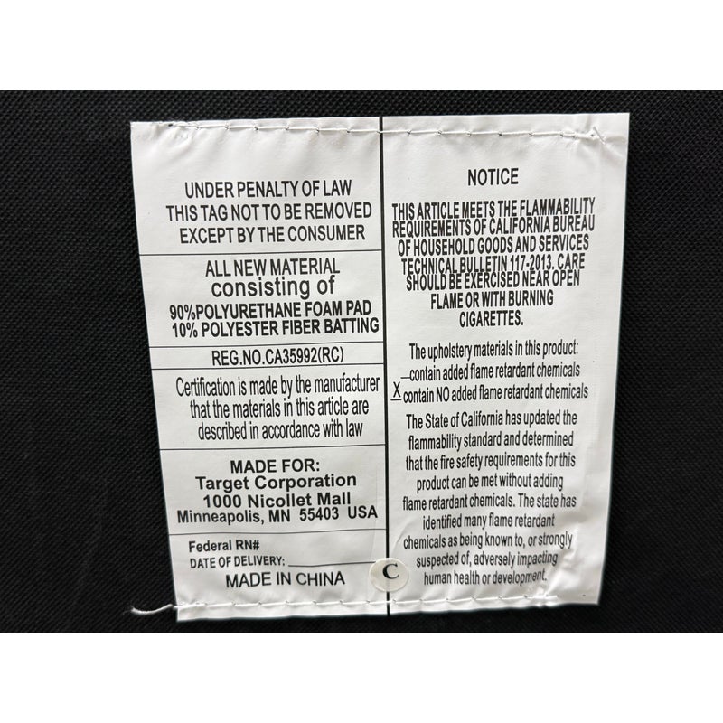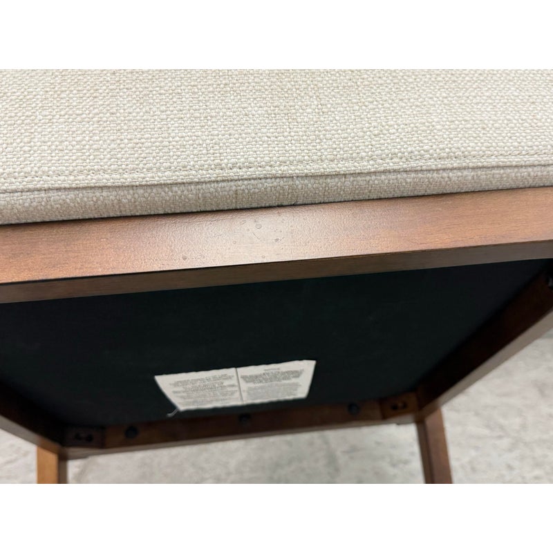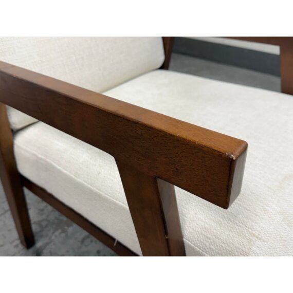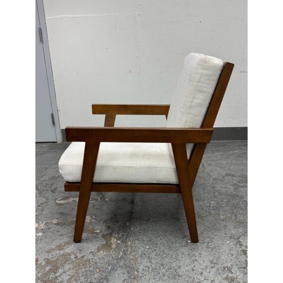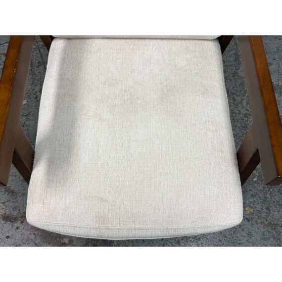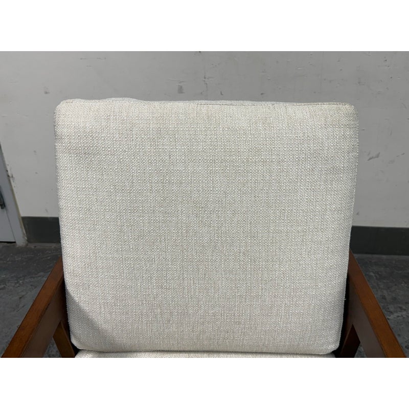 Design Plus Gallery presents the Grantsville Accent Chair by Studio McGee from Target. The chair has a wooden frame with grid like patterned back and two loose pillows for the seat and seat back. It is in good condition, visible wear on fabric. Would benefit with a professional cleaning.