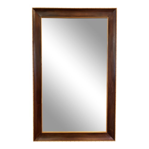Design Plus Gallery presents a Contemporary Wall Mirror. Two toned frame is enhanced with a small nailhead detail. Large expanse of glass is beveled.