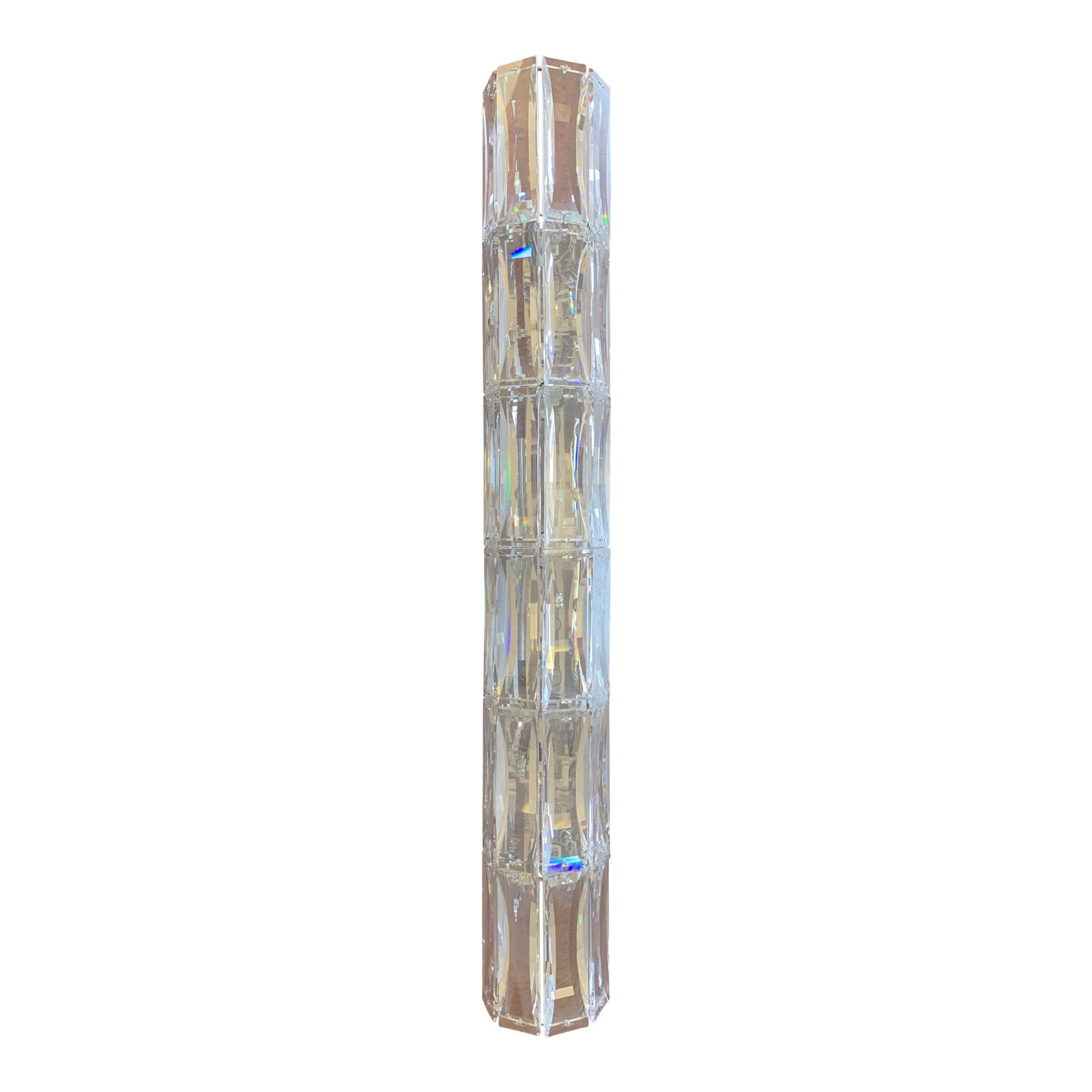 Design Plus Gallery presents the Verve Crystal Sconce by Swarovski. Verve is a versatile fixture with many applications. The wall luminaire can be mounted horizontally or vertically to suit your needs. The light’s contemporary shape, precision-cut crystal, and warm halogen light will gently illuminate a room while casting fine patterns on its walls. Made from polished stainless steel and genuine certified Swarovski® crystal. 5 – 25 Watt G9 Bulbs.