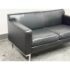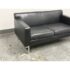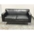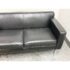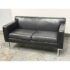 Design Plus Gallery presents the Theatre Sofa by Ted Boerner for Design Within Reach and American Leather. Designed in 2001 with studied proportions and geometric clarity, this sofa prioritizes comfort through its architectural form rather than excessive padding. A gently angled backrest, generous seat depth, and elevated armrests create supportive seating with balanced structure. The sofa is upholstered in black leather with a tailored profile and continuous chromed steel base runs the full depth of the frame. The combination of leather and steel highlights the modernist character of the piece while maintaining a timeless silhouette. It is in good condition with visible and minimal wear from usage. Made in the U.S.A.