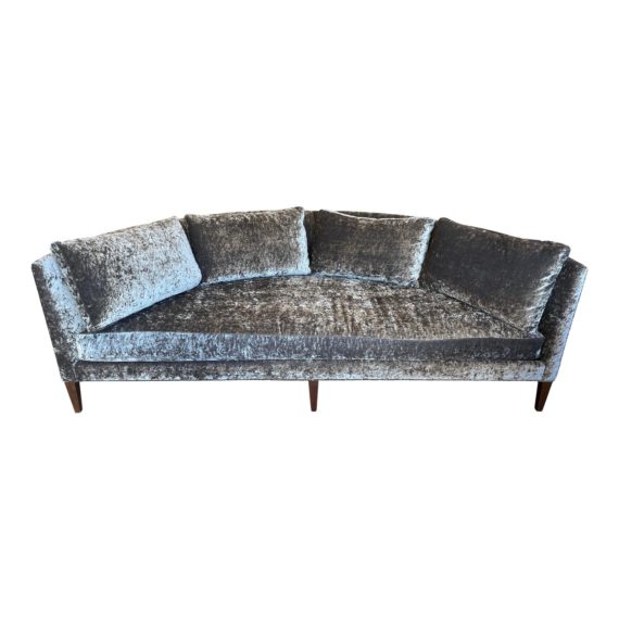 Design Plus Gallery presents a Custom Parker Sofa by Thayer Coggin. Upholstered in a grey crushed velvet sofa. Originally purchased from Khrome Studios in the San Francisco Design Center.