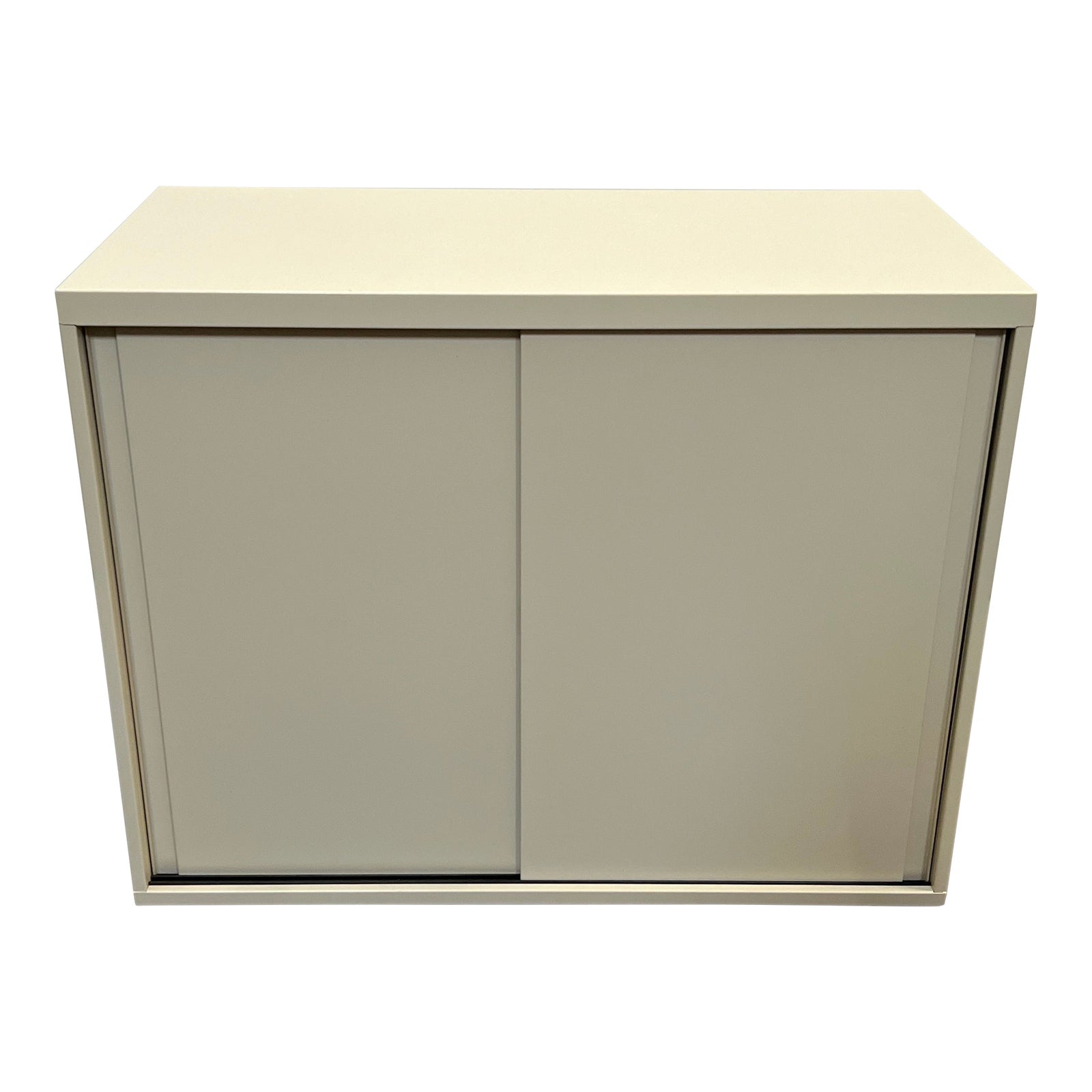 Design Plus Gallery presents a Metal Filing Cabinet from the Hon Company. There are two doors that slide to open up either side. Adjustable shelf in the inside allows for simple organization. In good condition, minor wear.