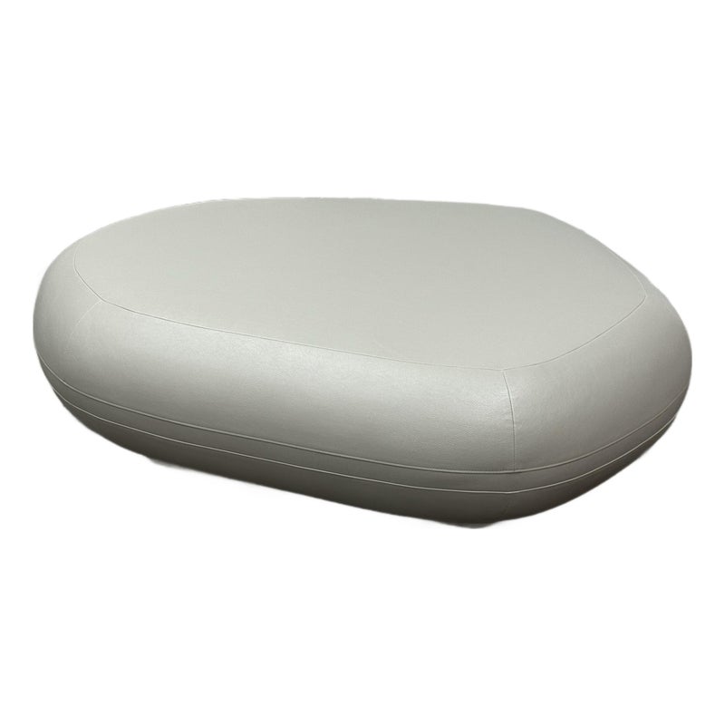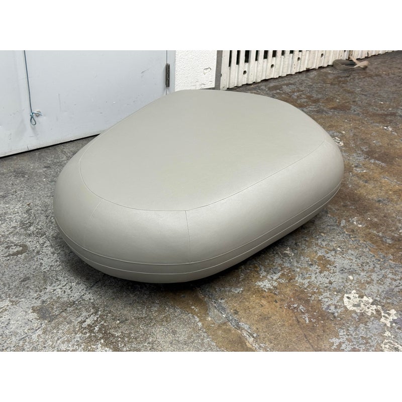 Design Plus Gallery presents an Inca Leather Ottoman by The Jiun Ho Collection. A custom-made, handcrafted piece of luxury furniture inspired by the Andes mountains. It is part of the Inca Collection. Upholstered in a greige leather, with the design appearance that is natural and aesthetically pleasing. In good condition, minimal wear from usage. Made in USA.