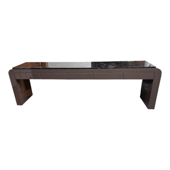 Thomas Fetherston Brown Lacquer Five Felt-Lined Drawer Marble Top Sideboard / Console Table