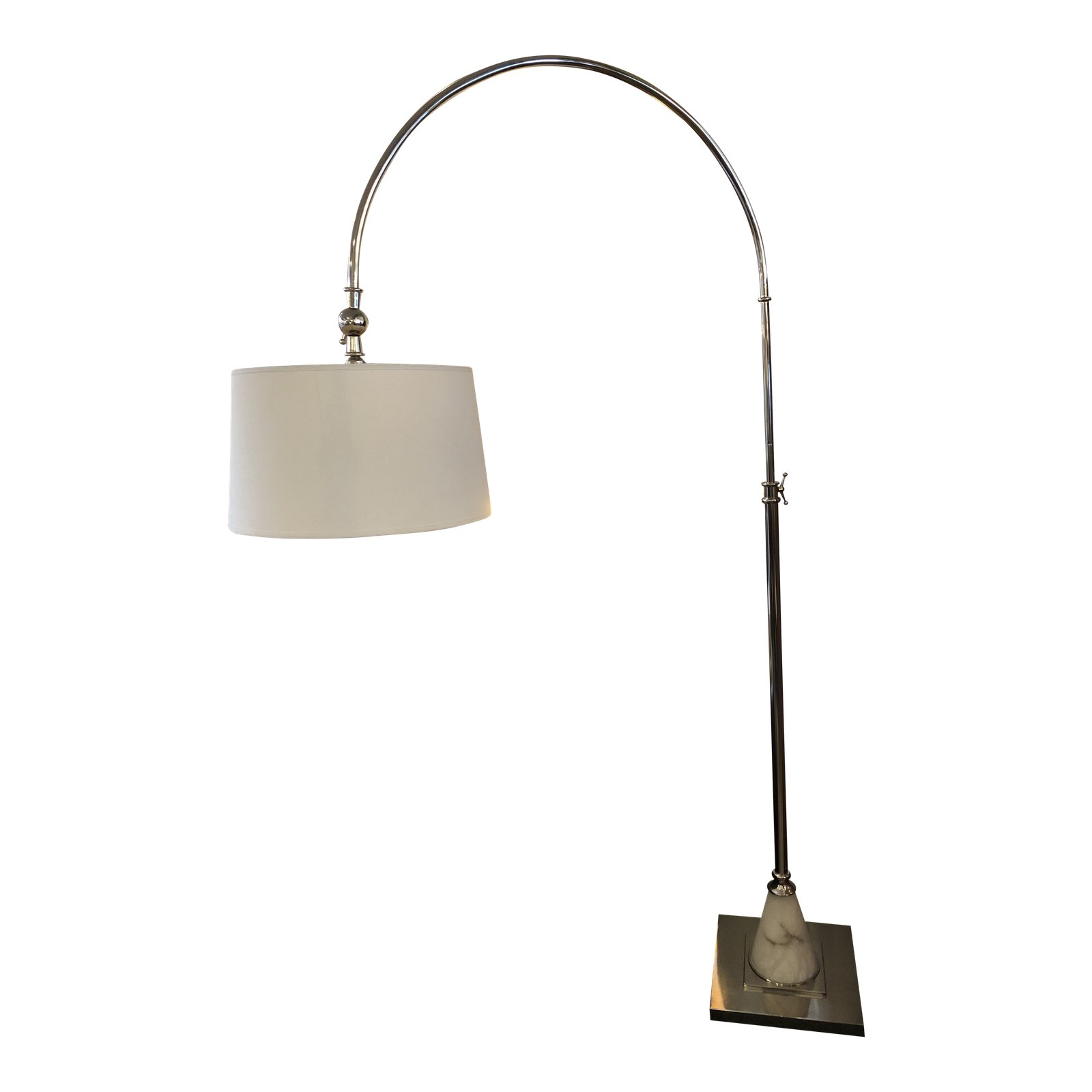Design Plus Gallery presents an Arc Floor Lamp by Thomasville. Transitional in design, the elegant floor lamp has a unique marble + chrome base and traditional shade. Column is height adjustable and shade can be positioned as needed. No manual switch, must be plugged into switched outlet.