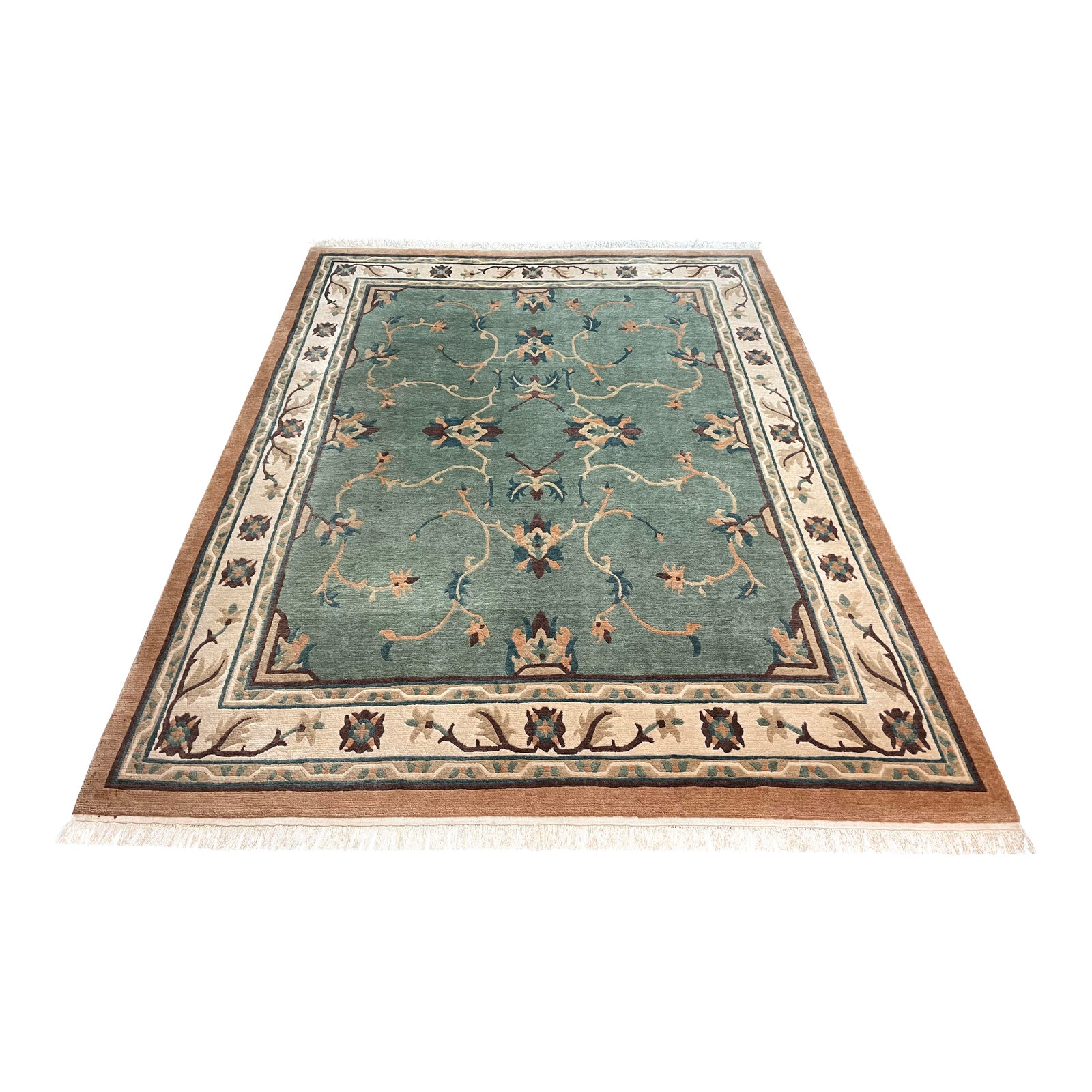 Tibetan Hand Knotted Green + Brown Wool Rug – 8′ × 10′