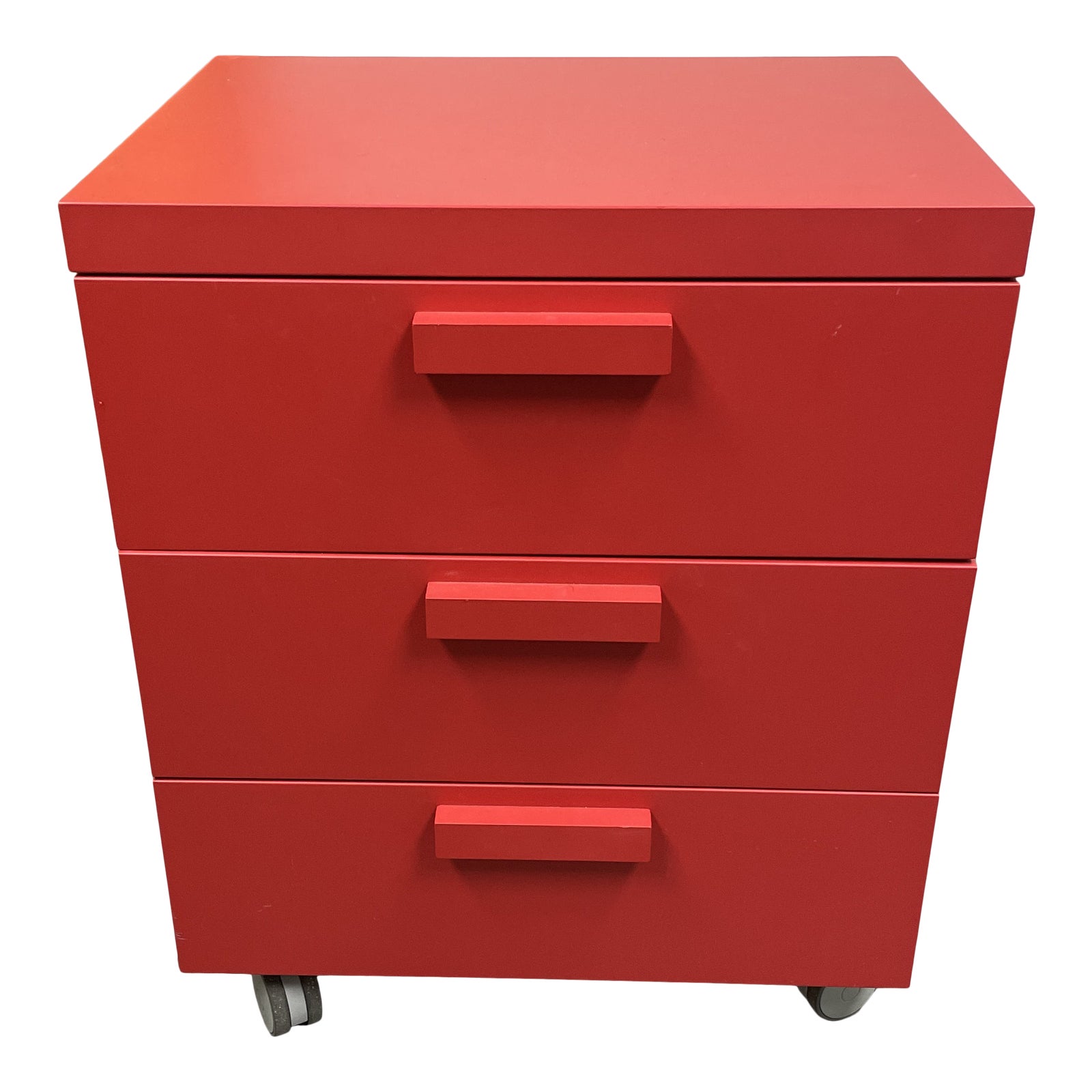 Tisettanta Red Three Drawer Side Table on Castors. Original Price: $1,200