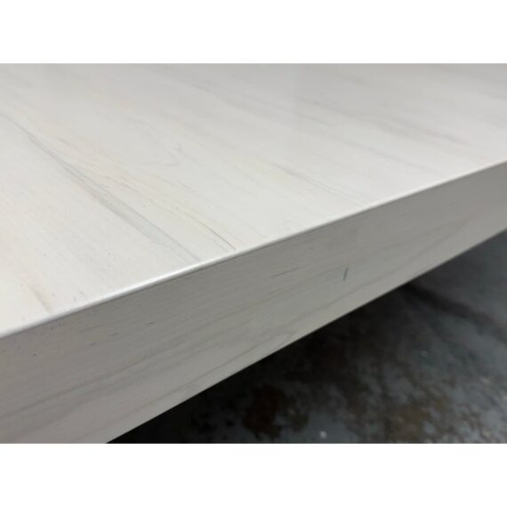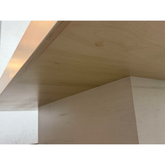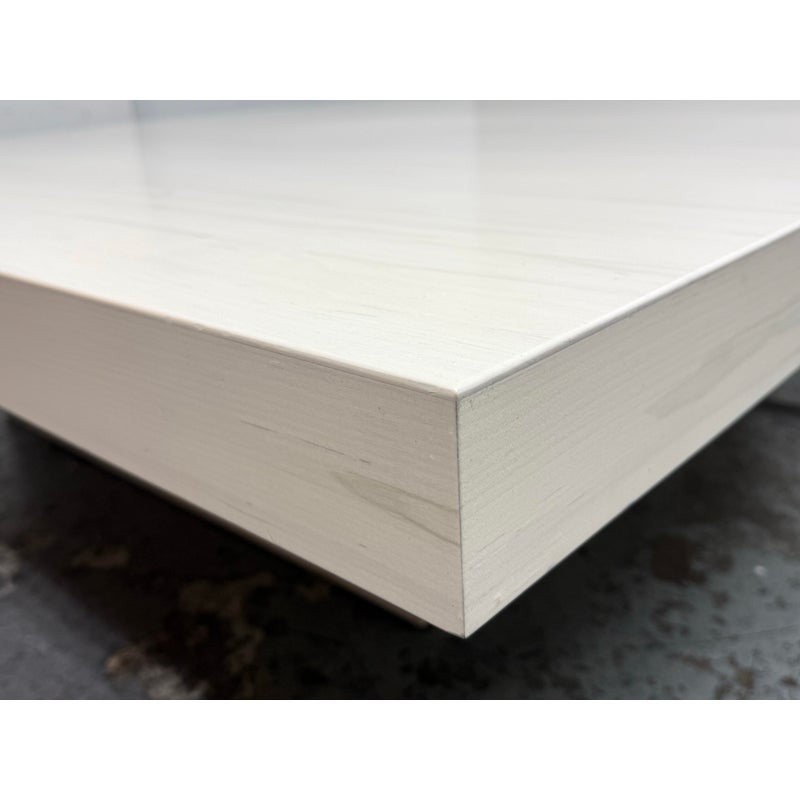 Design Plus Gallery presents a Coffee Table by Tod Von Mertens for De Sousa Hughes. This custom table by esteemed designer Von Mertens showcases an exceptional wood, what they consider as Bleached Ambrosia. Bleached ambrosia wood refers to ambrosia maple (or similar woods) that have been lightened using wood bleach to enhance their natural creamy tones and contrast with the distinctive gray, blue, or brown streaks left by ambrosia beetles, creating a sought-after modern, bright, or coastal look for furniture and decor. The coffee table has grandiose proportions that is perfect for a sectional living in a coastal, Cape Cod theme. It is in good condition with minimal wear for its usage. Made in the USA.