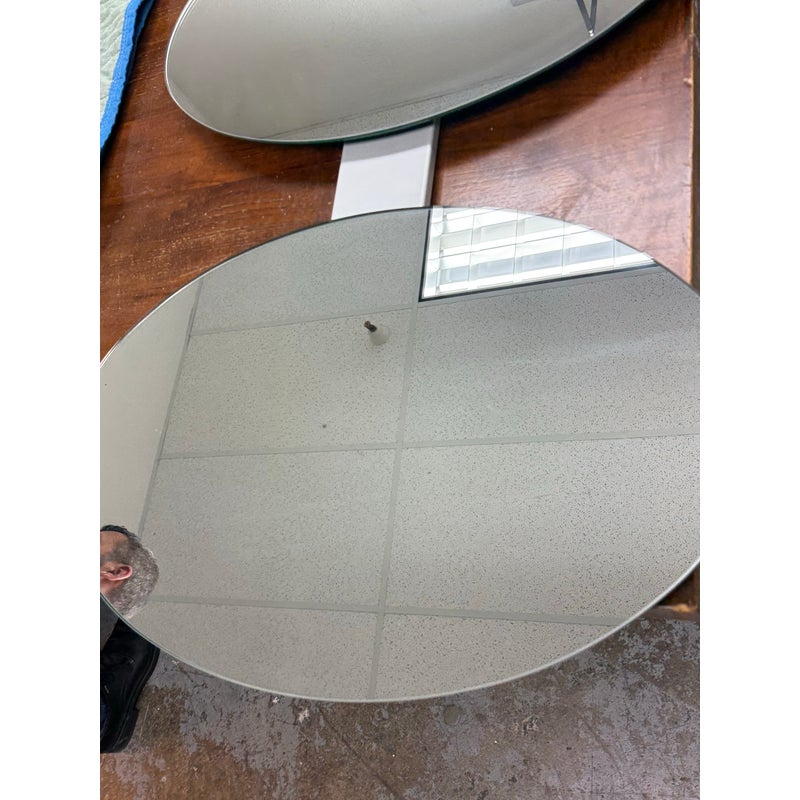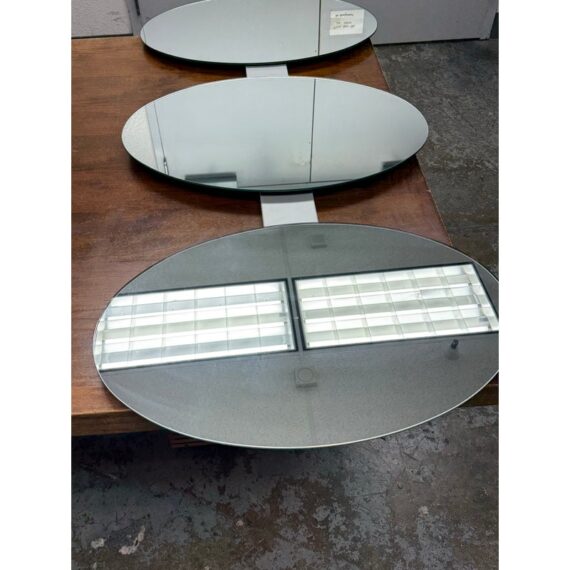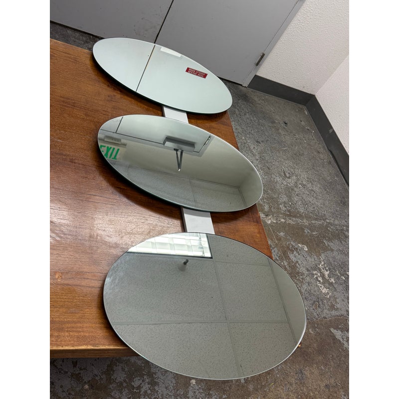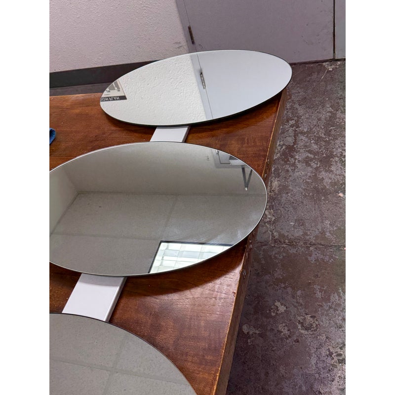 Design Plus Gallery presents the Three Oval Wall Mirrors from Tonelli. A striking wall-mounted composition designed with a vertical arrangement of three oval mirrors. Each mirror is connected by a streamlined metal frame, creating a cohesive architectural presence that reads as both functional and sculptural. The elongated form draws the eye upward, making it well suited for entryways, hallways, living spaces, or bedrooms where visual height and reflection are desired. Whether styled as a focal point or used to amplify light and space, this Tonelli mirror set offers versatility and visual interest. In good condition, visible and minimal wear from usage. Made in Italy.