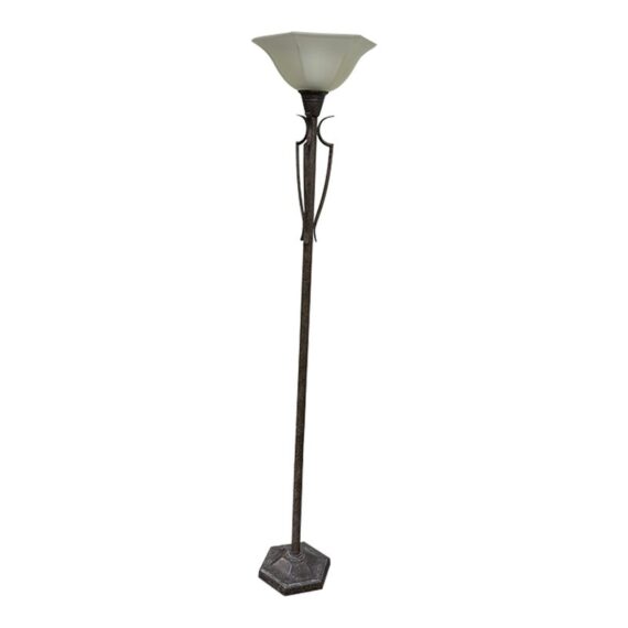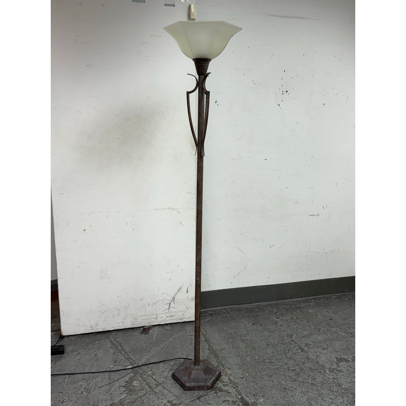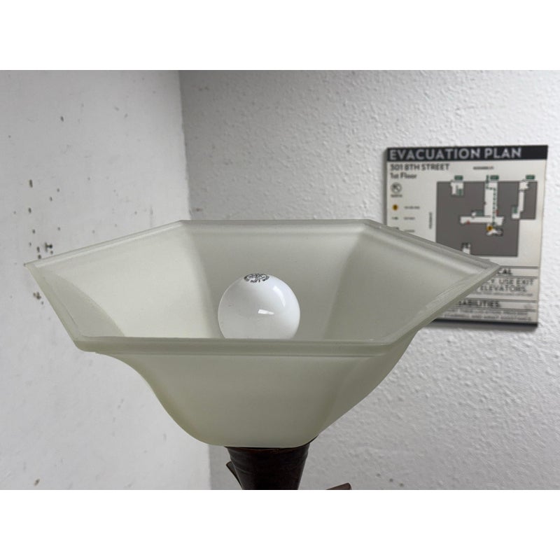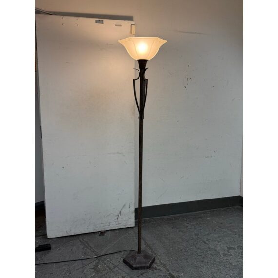 Design Plus Gallery presents a Vintage Floor Torchiere Light. The design gives the allusion of old world charm and nostalgia for European life. Patina to the metal is present but overall in good condition for its usage.
