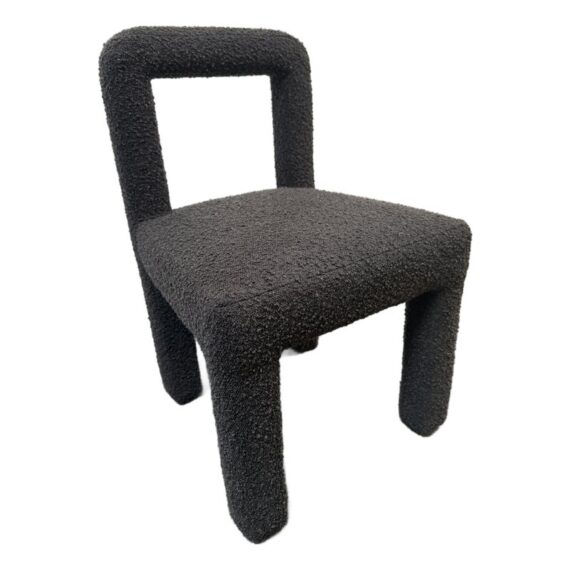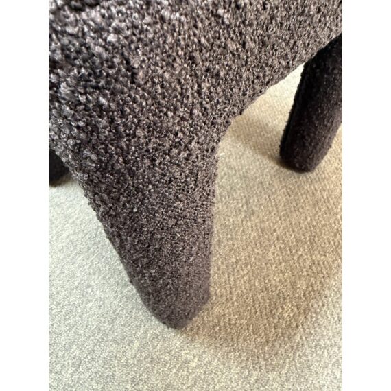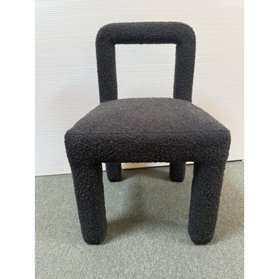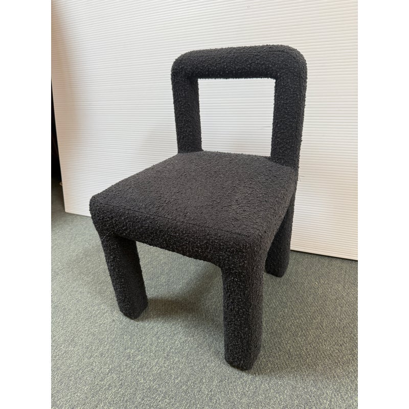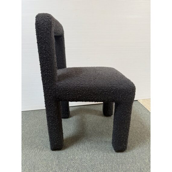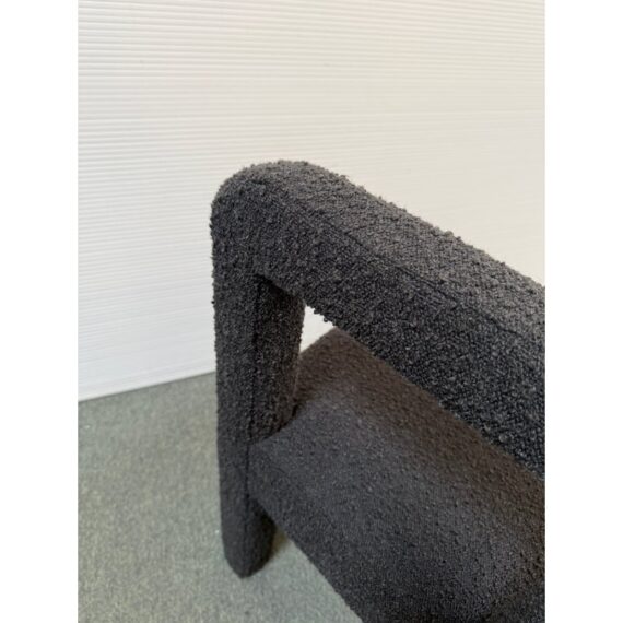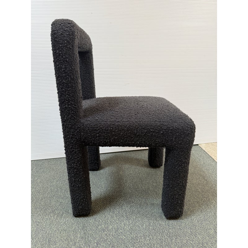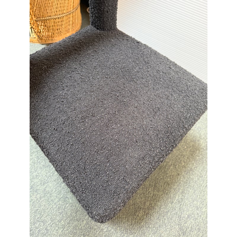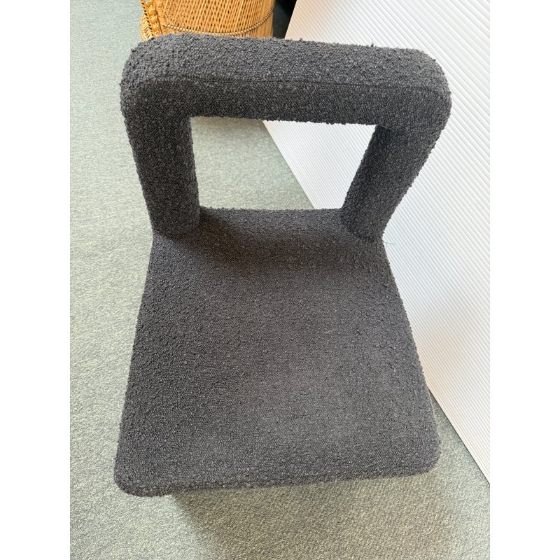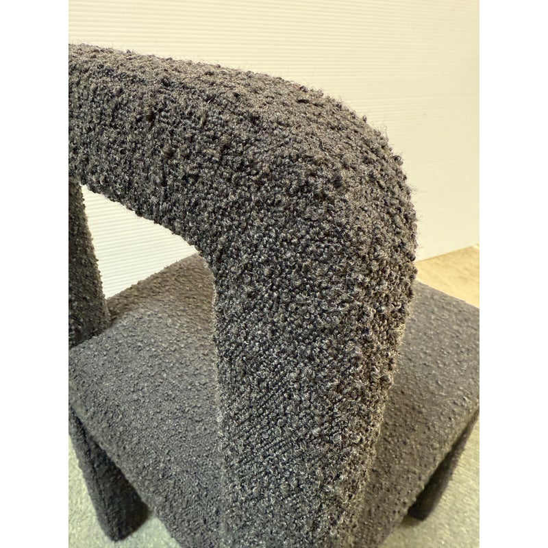 Design Plus Gallery presents a Hazel Chair by TOV Furniture. Simple lines and tons of texture is what this unique chair is all about. Padded and wrapped in textured black boucle for great looks and feels. Light wear; condition is good for age and use.
