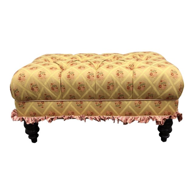 Traditional Tracy Portor Yellow Tufted Fabric Ottoman