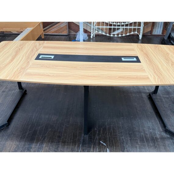 Design Plus Gallery presents the Modern Boat Shaped Meeting Table from Tribesigns. The conference table gives the classic rectangular shape a modern touch with its rounded + sculpted edges that combine creativity with class and durable construction. Suitable for in a variety of environments from board rooms to executive offices or collaborative settings. Is in good condition, visible and minimal wear from usage.