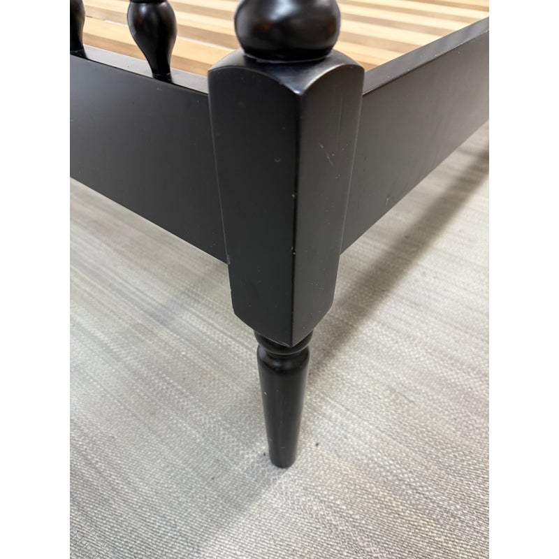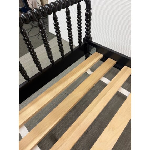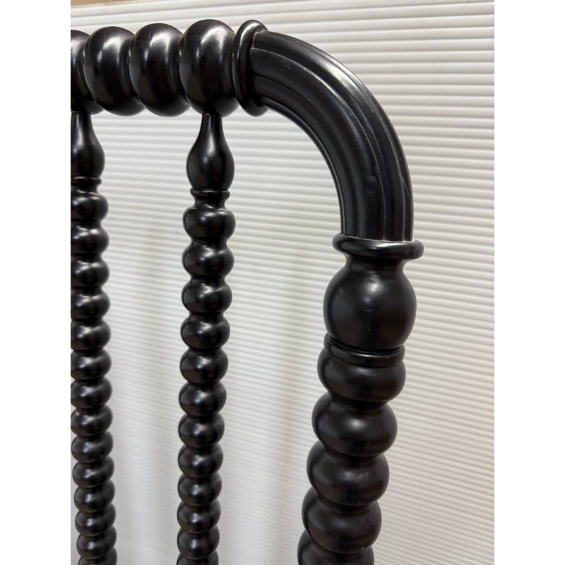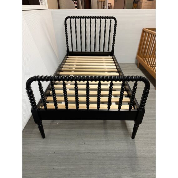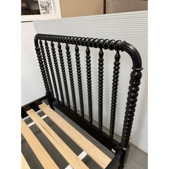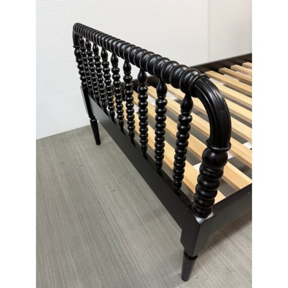 Design Plus Gallery presents a Twin Size Jenny Lin Wood Spindle Bed Frame from Crate & Barrel. From the Jenny Lin Collection, manufactured by The Land on Nod. Timeless and tailored, showcases intricate wood turnings in a rich black finish that makes its silhouette pop. Named for 19th-century opera sensation Jenny Lind—the pop icon and influencer of her day—it carries a legacy of style that feels both classic and current. Crafted in the same location with the same beloved design for more than 20 years, its modern sensibility means it hasn’t aged a day. Each spindle is turned from a single piece of wood and hand-sanded to capture every gorgeous detail, resulting in a smooth, sculptural look that’s as durable as it is beautiful. An heirloom-worthy centerpiece that anchors any room with effortless charm. Visible surface wear touched up; condition is consistent with age and child use. Made in Vietnam.