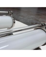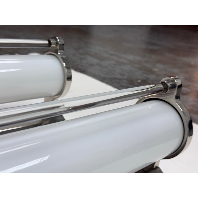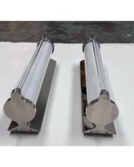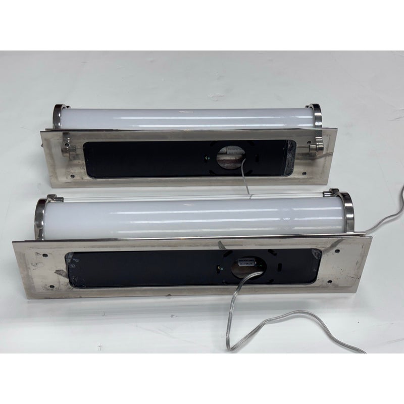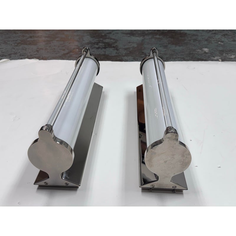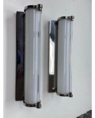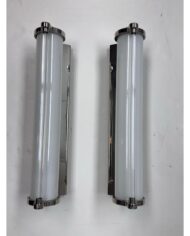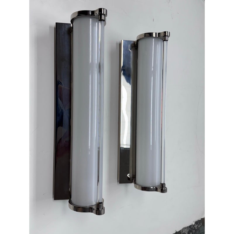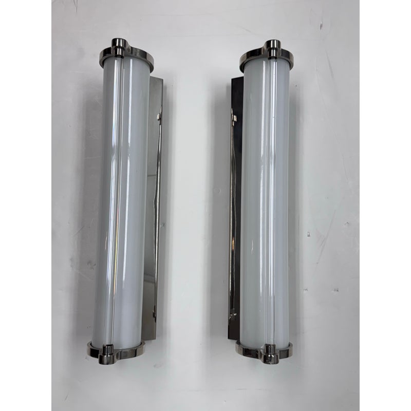 Design Plus Gallery present a Pair of Bexley Wall Sconces from Urban Electric. A striking blend of craftsmanship and style, this pair features refined glass rod detailing and a streamlined, Art Deco–inspired silhouette. The silver finish lends a luminous, modern polish that complements both contemporary and classic interiors. These sconces offer enduring quality and elevated presence in hallways, living rooms, baths, or flanking a mirror. In good condition, visible and minimal wear. Made in USA.