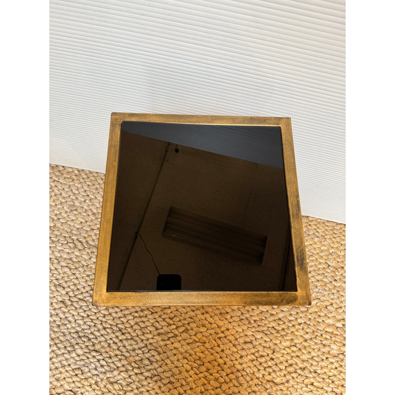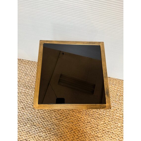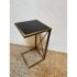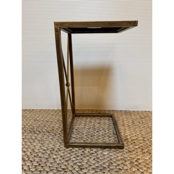Design Plus Gallery presents the Zafina Gold Side C-Table from Uttermost. We consider this to be a perfect pull up table with a classic black + gold color combination. The finish of the metal is lightly antique gold and the table top is a black piece of tempered glass. The table is in good overall condition for its usage.