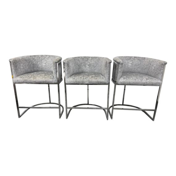 Vanguard Counter Stools in Burnished Silver Velvet, Set of Three. Original Price: $5,400