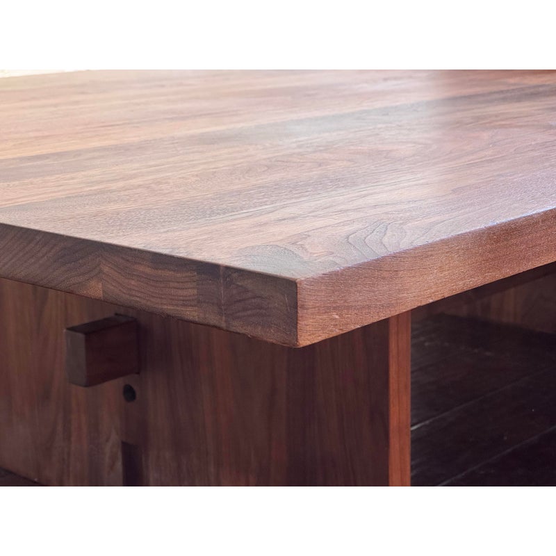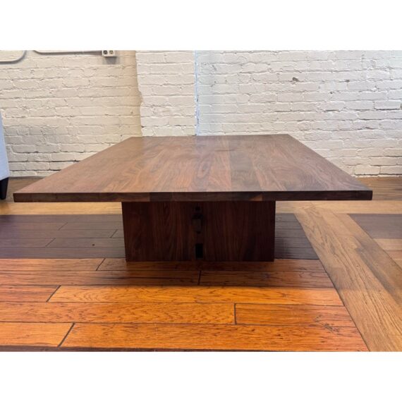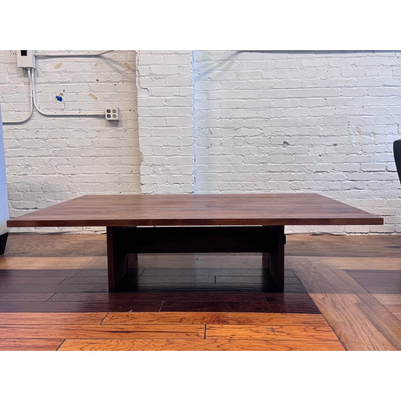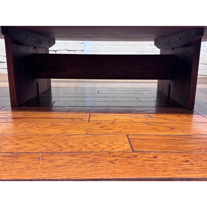 Design Plus Gallery presents a Walnut Coffee Table from Vermont Furniture for Room & Board. Crafted solid walnut woods. In good condition, visible scratches and wear from usage. This is a discontinued model. Made in Burlington, Vermont, USA.