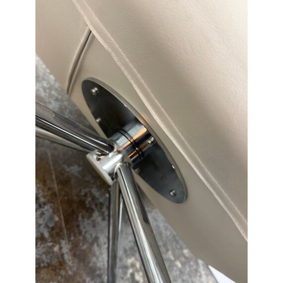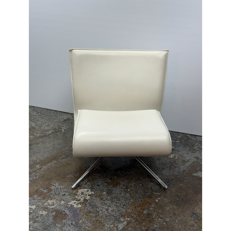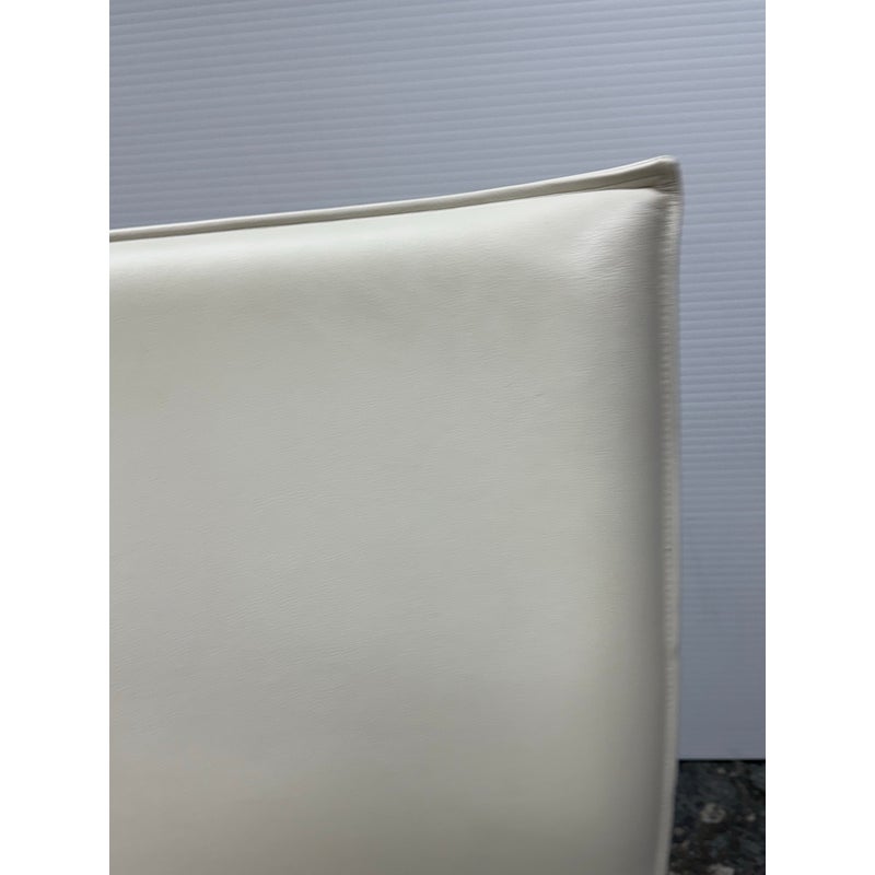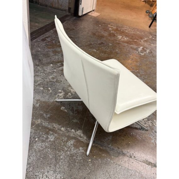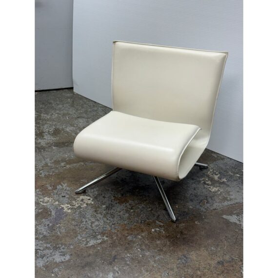 Design Plus Gallery presents the Hob Easychair by Vertijet for COR Sitzmöbe. Conceived in 2001 and released in 2003, this chair was designed by VERTIJET and showcases a sculptural yet relaxed form intended for contemporary living spaces. Upholstered in white leather, the Hob Easychair offers a gently curved back and seat that flow together as a continuous surface, creating a visually light profile with inviting comfort. The tailored leather upholstery highlights the chair’s clean geometry, while subtle stitching defines its contours. A polished metal swivel base supports the seat, providing stability and ease of movement while reinforcing its modern character. Ideal for living rooms, offices, or reading areas, this easychair integrates seamlessly into modern, minimalist, or European-inspired interiors, serving as both functional seating and a considered design statement. In good condition, visible and minimal wear from usage. Made in Germany.