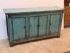 Design Plus Gallery presents a Vintage Asian Cabinet. The scale of this lovely cabinet is accentuated by the distressed turquoise lacquer finish. The doors open to adjustable shelving that allows for ample storage. Size and scale makes it a wonderful entryway piece or media cabinet. Distressed finish intentional; condition is good for age and use.