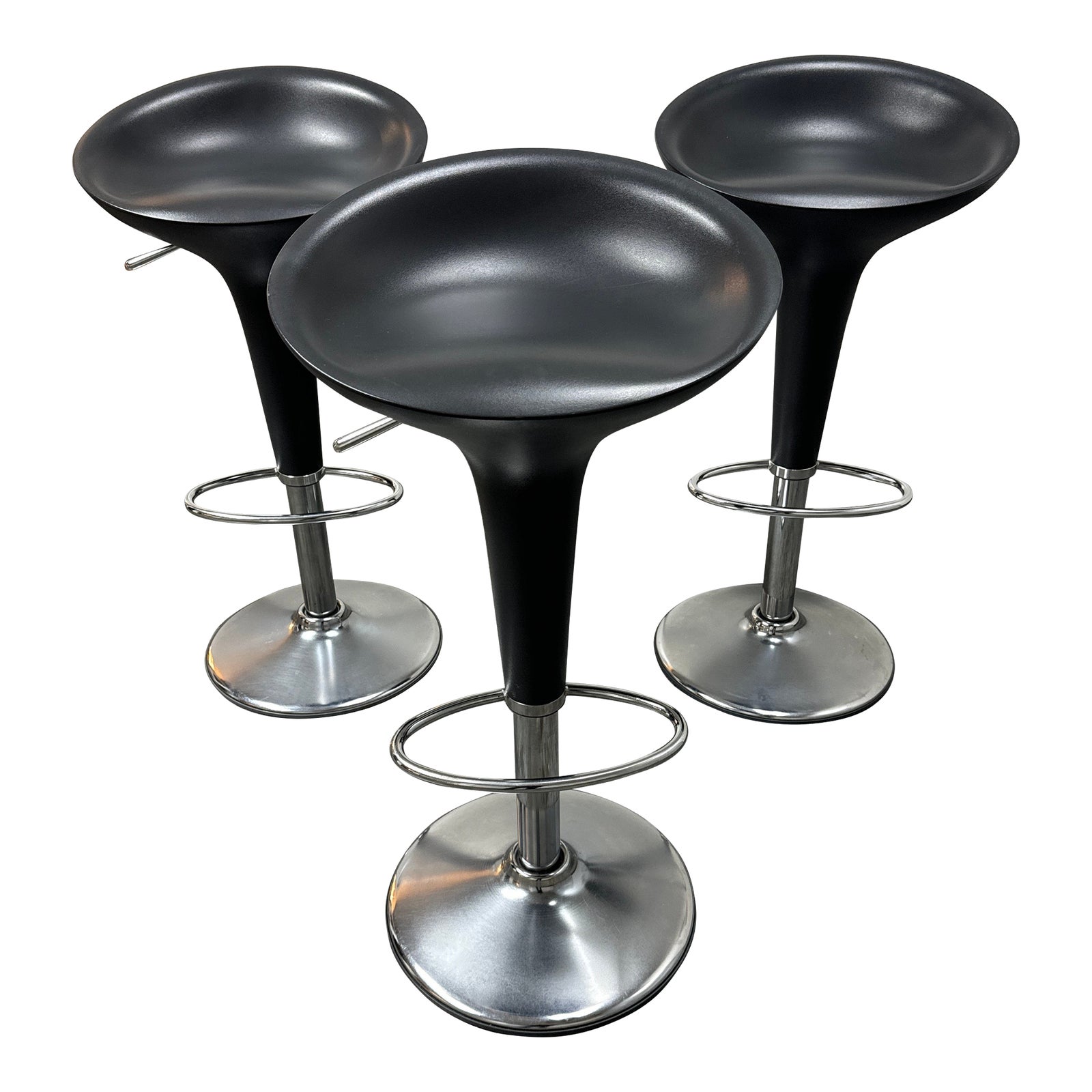 Vintage Bombo Magis Black/Chrome Adjustable Height Stools, Set of Three. Original Price: $3,300