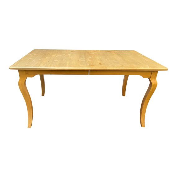 Design Plus Gallery presents a Vintage Dining Table. The natural color allows the sculptural quality of the legs to star, while allowing the texture of the woodgrain to show through. The table expands from 60-75 inches long with the use of leaf, included. Visible surface wear; fair condition. Made in USA.