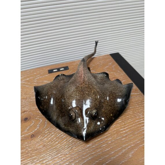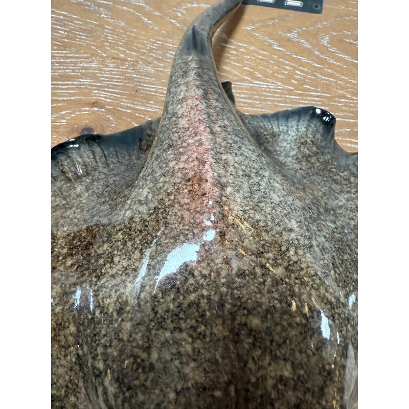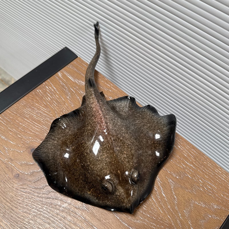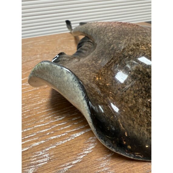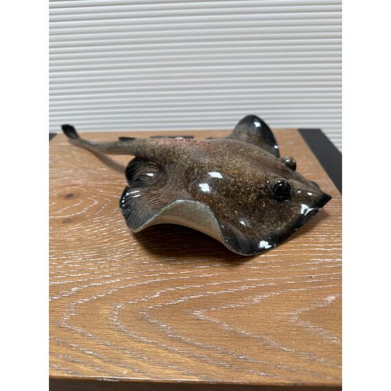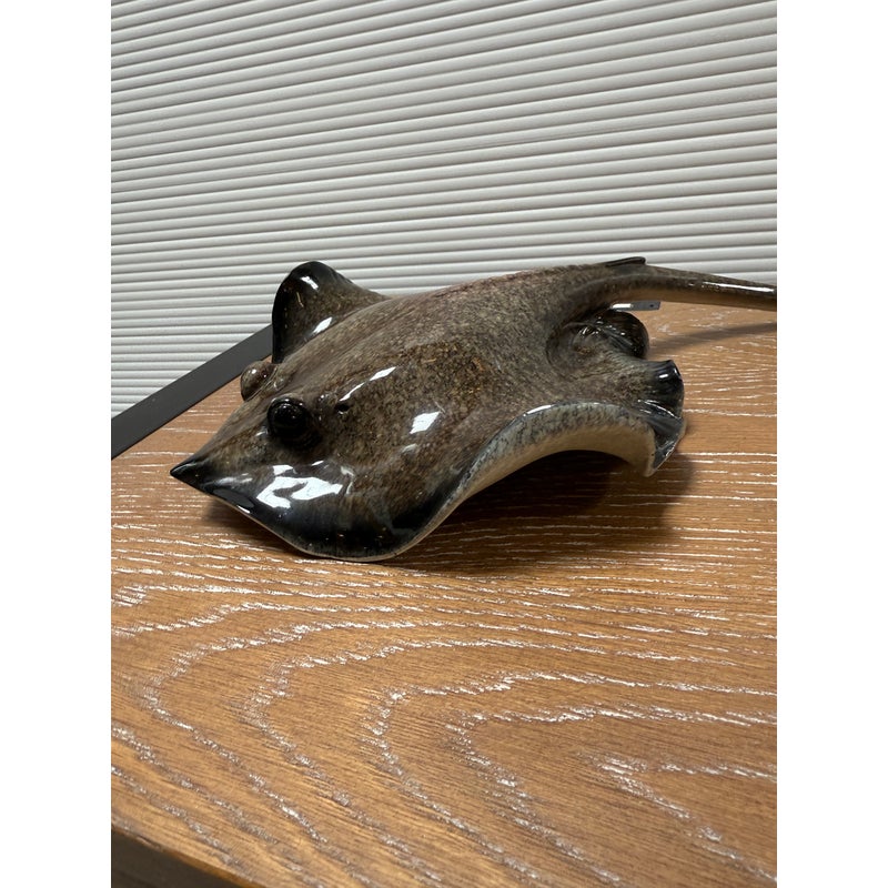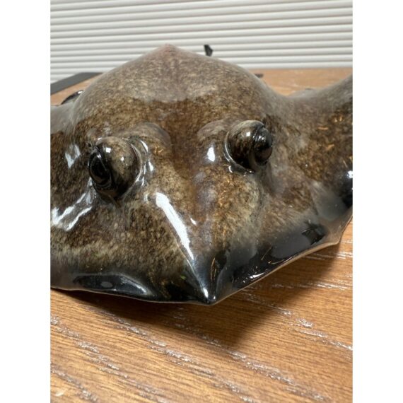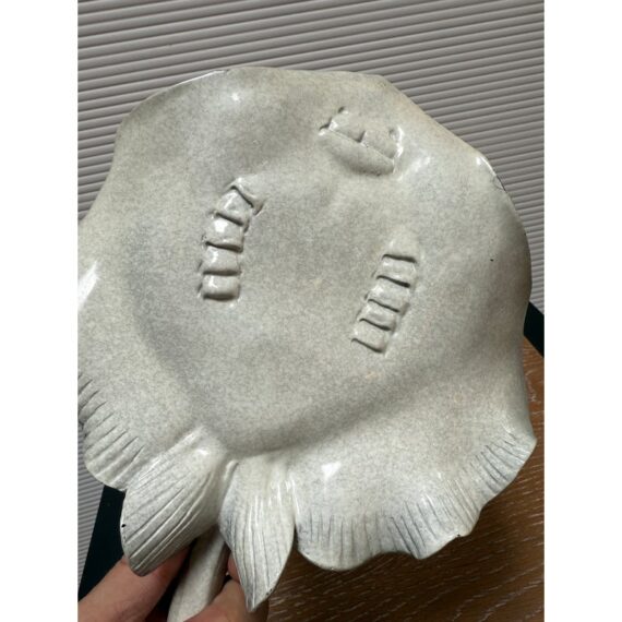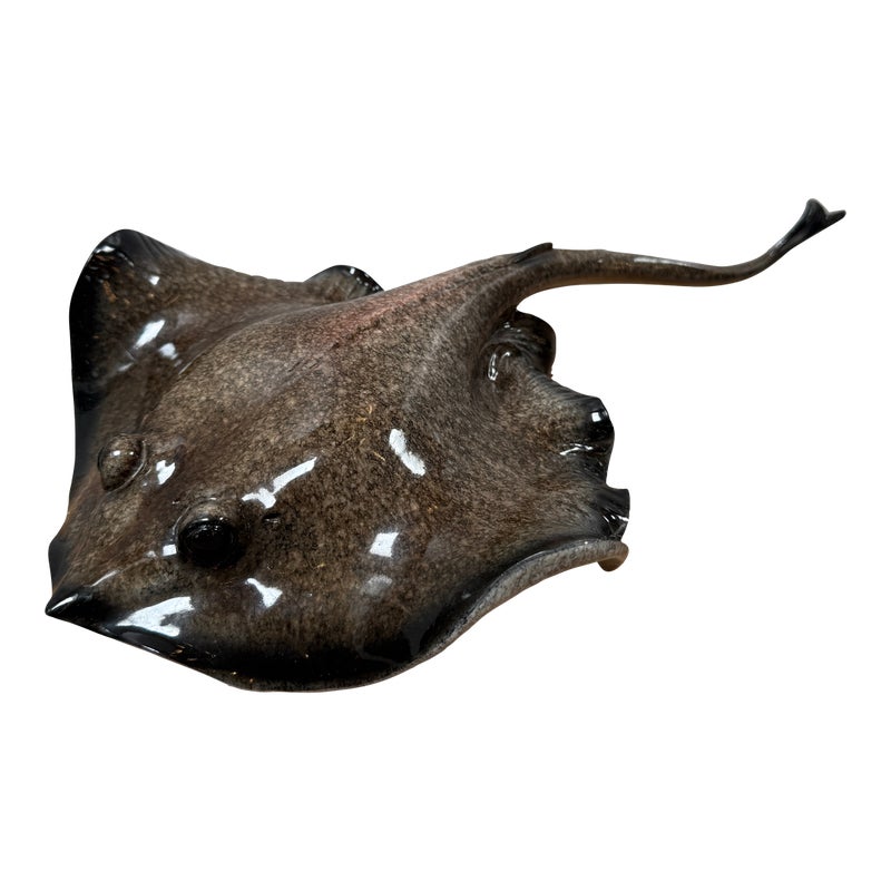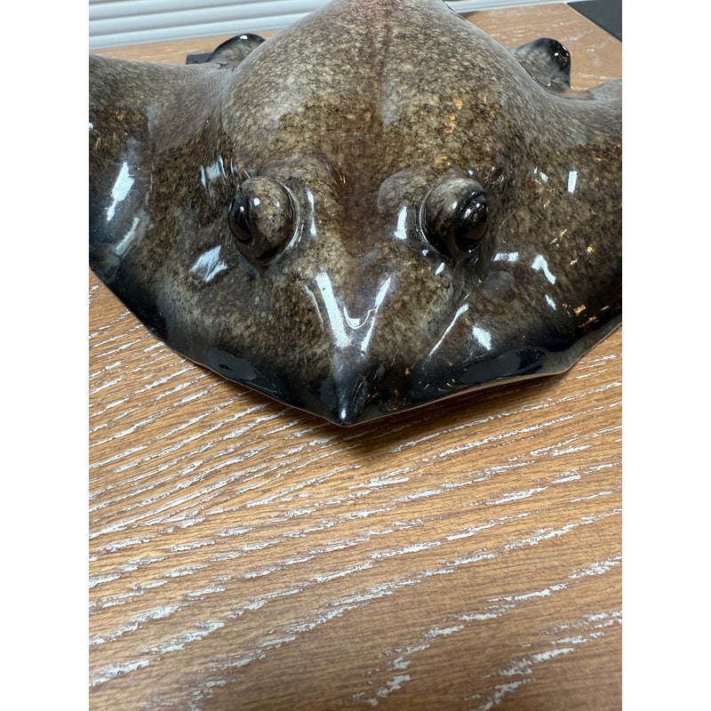 Design Plus Gallery presents a Stingray Sculpture Made of Ceramic. The hyper-realistic piece has so many wonderful aspects that actually make you feel like you are looking at the majestic creature. The upper portion captures the fish finely; note its flattened, disc-like body, whip-like tails,, and even gills + mouth on the underside. The sculpture is of an unknown age or brand, believed to be from the Late 20th Century and considered to be vintage. Is in good condition for its age.