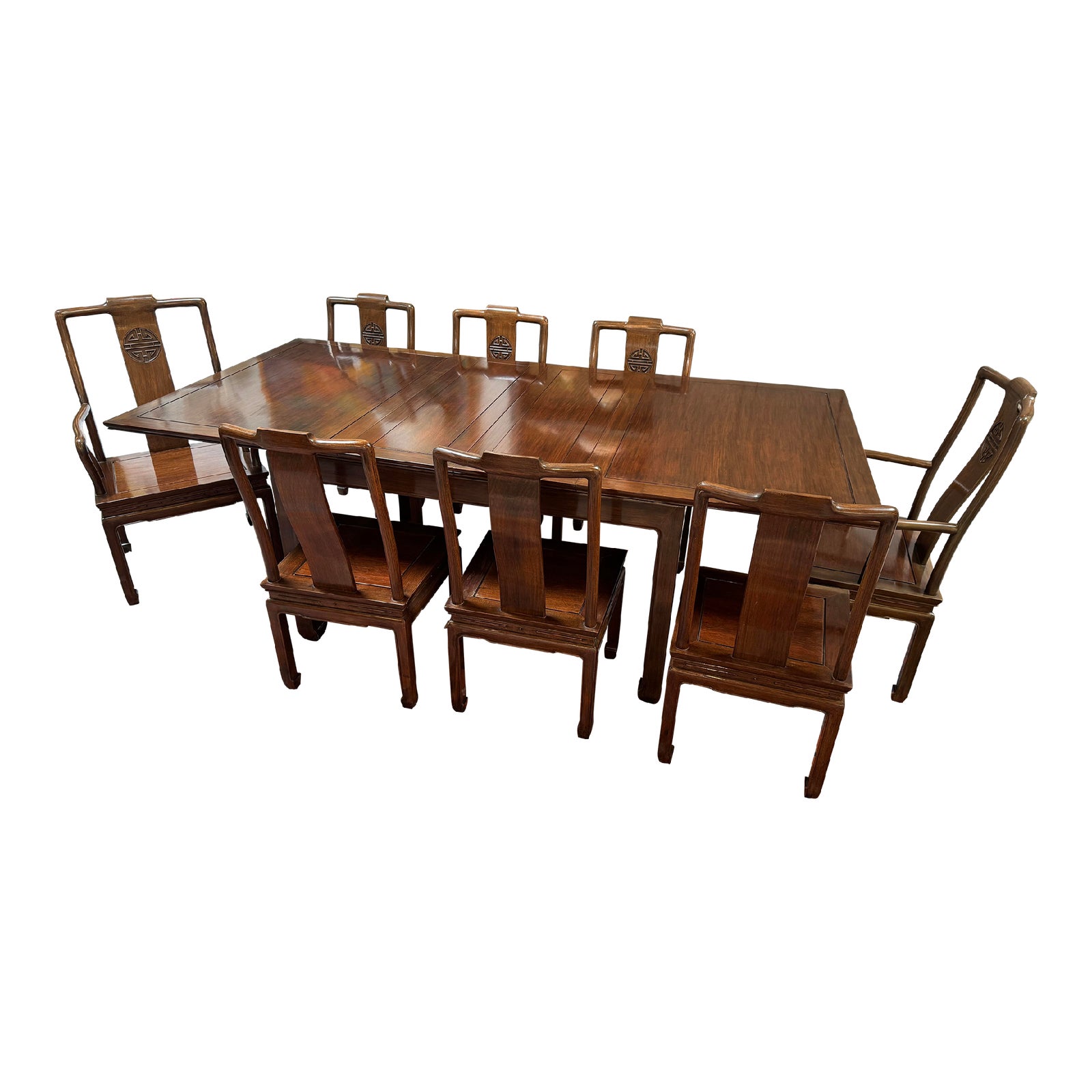 Vintage Chinese Rosewood Extension Dining Table + 8 Chairs