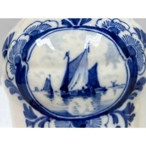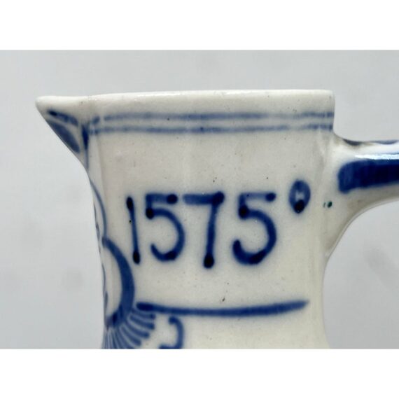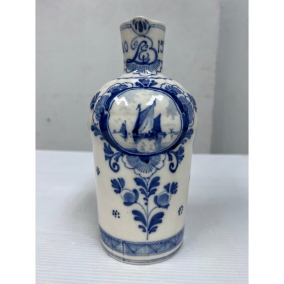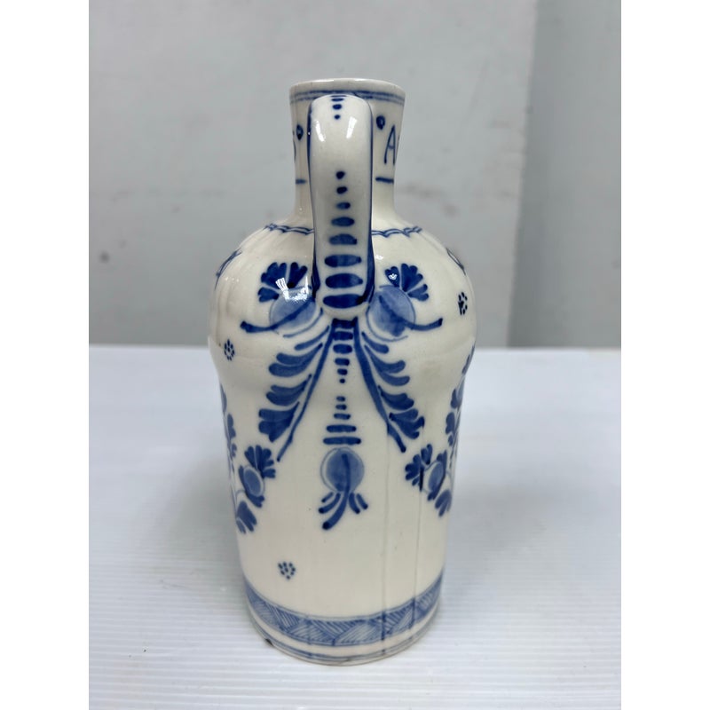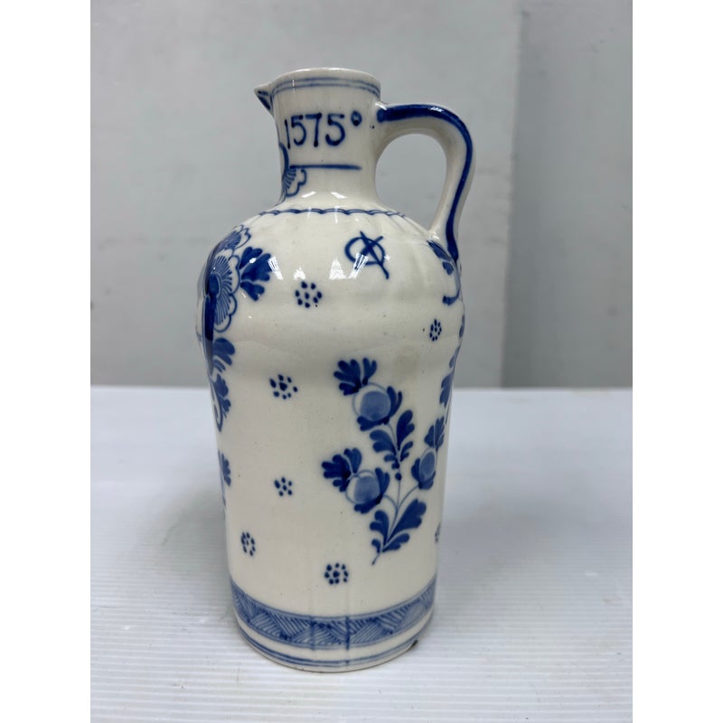 Design Plus Gallery presents a Vintage Bols Delft Blue Decanter Jug. Features the classic blue and white style associated with Delftware pottery. It was originally intended to hold Bols Genever, a traditional Dutch gin. The text “1575” on the neck refers to the year the Bols distillery brand was established in Amsterdam. Item is in good condition, visible and minimal surface wear that is consistent with use.