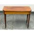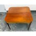 Design Plus Gallery present an Vintage Wooden Flip-Up Extension Table. The console table features rounded corners, turned legs, and a gateleg support that stabilizes the flip-up extension. The top displays natural grain variation and a timeworn patina, and the apron includes subtle corner inlay detailing with visible brass hinges at the leaf edge. The gateleg action opens and closes smoothly, and the proportions remain clean and balanced in both positions. This is a discontinued model and is in good condition with visible patina and minimal wear from usage.