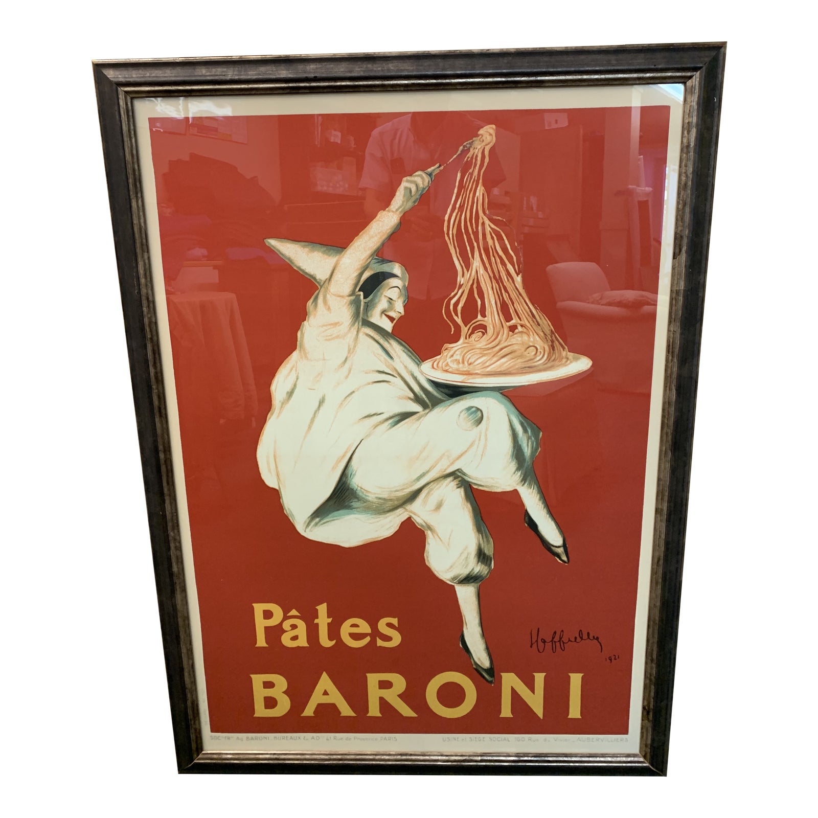 Design Plus Gallery presents “Pates Baroni” by Leonetto Cappiello. A large format brilliant, engaging advertising poster featuring a harlequin and his pasta. Custom framed and always contemporary.