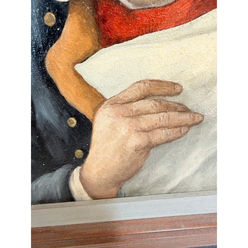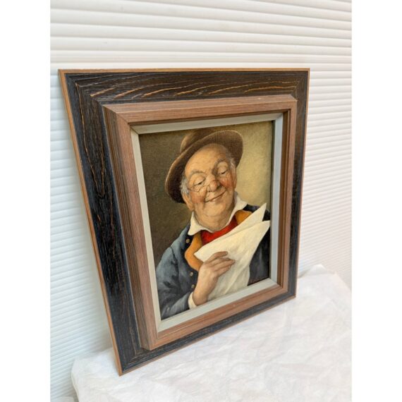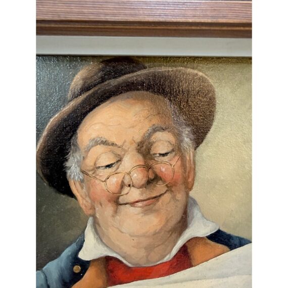 Design Plus Gallery presents an Original Painting in the style of Hans Kerber. The genre of depiction is a character driven scene that captures the “everyman” in a moments of contemplative joy. What news could bring that relaxed and nostalgic smile? The masterful execution of the figure deserves attention. Figure’s dress is Austrian everyday wear. Light surface wear; condition is good for age. Professionally framed.