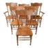 Design Plus Gallery presents a Vintage Set of Six Dining Chairs by Hill & Sons. Solid Oak, with traditionally pressed designs, creates an heirloom set of chairs for your home. Delicate turned spindles add whimsy. Light surface wear; condition is consistent with age and use.