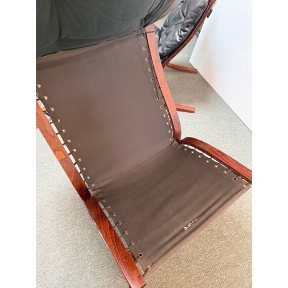 Design Plus Gallery presents a Pair of Siesta Lounge Chairs by Ingmar Relling for Westnofa. These Siesta Classic Chairs have plush leather cushions that will make them your preferred easy chair, complemented by a lightweight frame that enhances its airy aesthetic. Soft, gently padded armrests enhance the minimal aesthetic while offering excellent support to alleviate pressure from your arms and shoulders. The combination of these cushions and the subtly flexible frame guarantees exceptional comfort. They show wear consistent with their decades old age that is minimal and are in good condition.