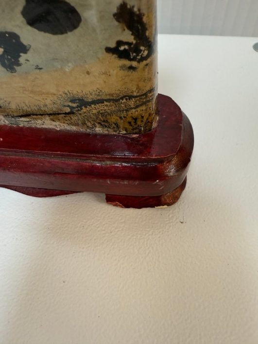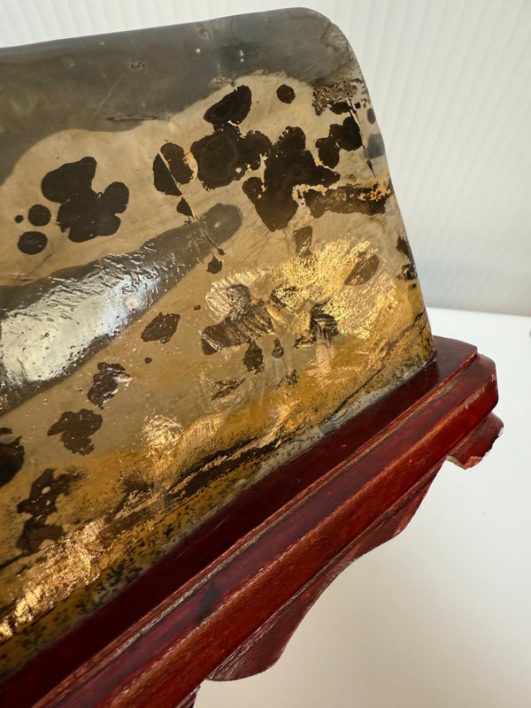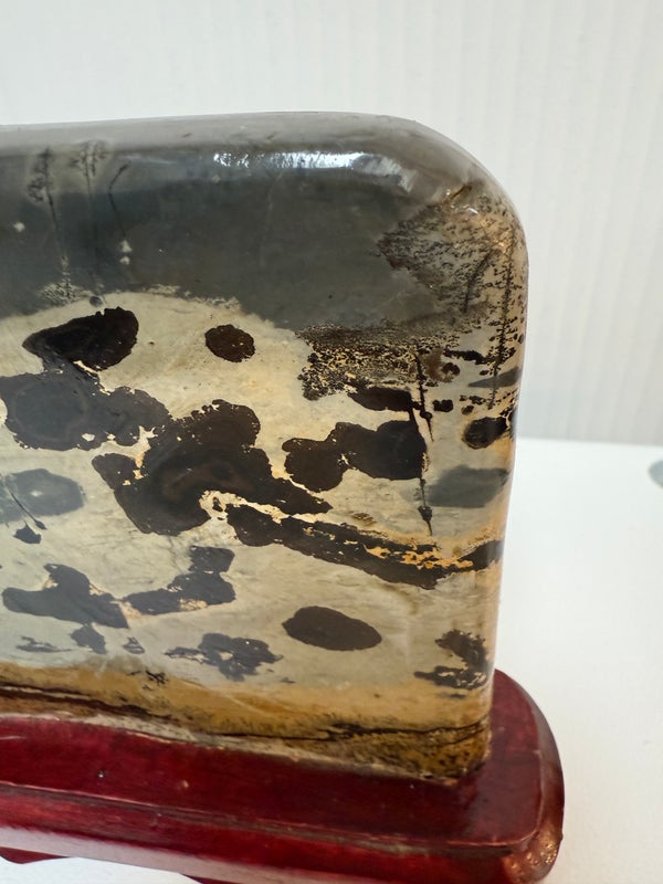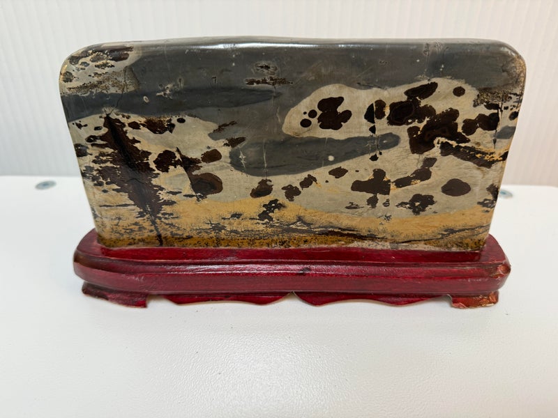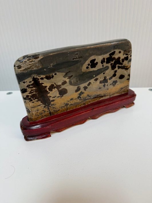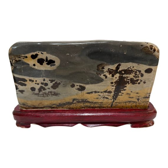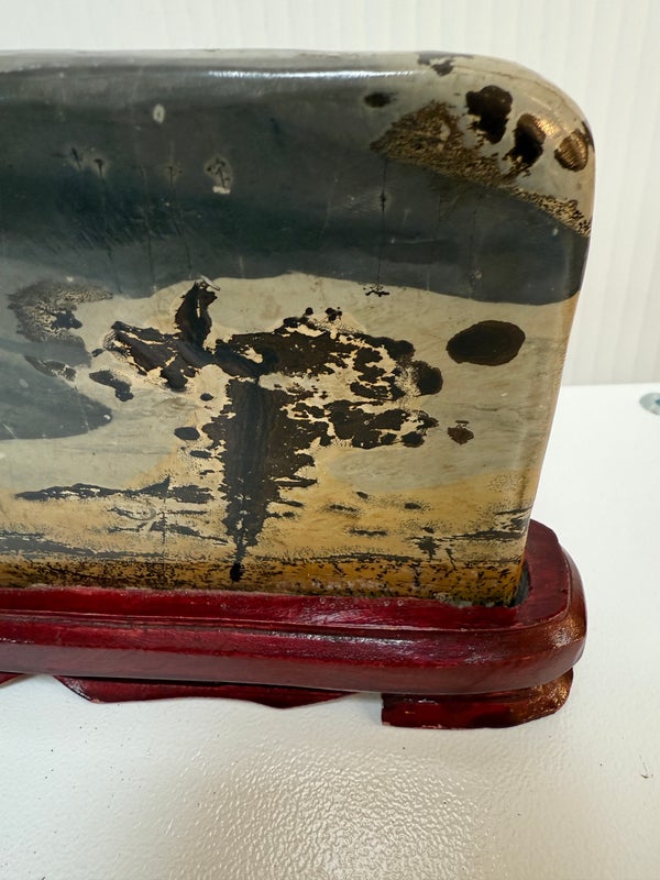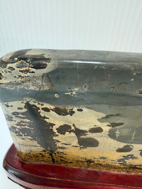 Design Plus Gallery presents a wonderful Japanese Suiseki (水石) Stone on Wooden Base. The Suiseki are small naturally occurring stones which are appreciated for their beauty and power to evoke a natural scene or object. Is in good condition with minimal wear for its usage.