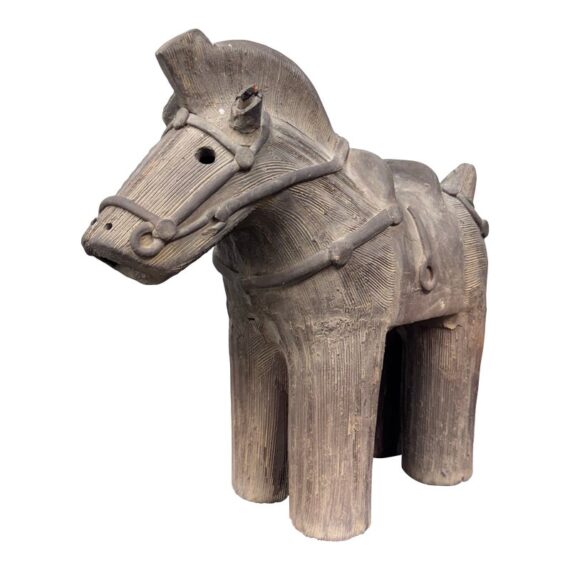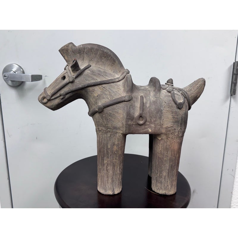 Design Plus Gallery presents a Japanese Haniwa of Terra Cotta, Handmade in Japan. Created to placed around burial mounds to protect in the afterlife. Use of the wazumi method was used in its creation. Is in good condition for its usage.