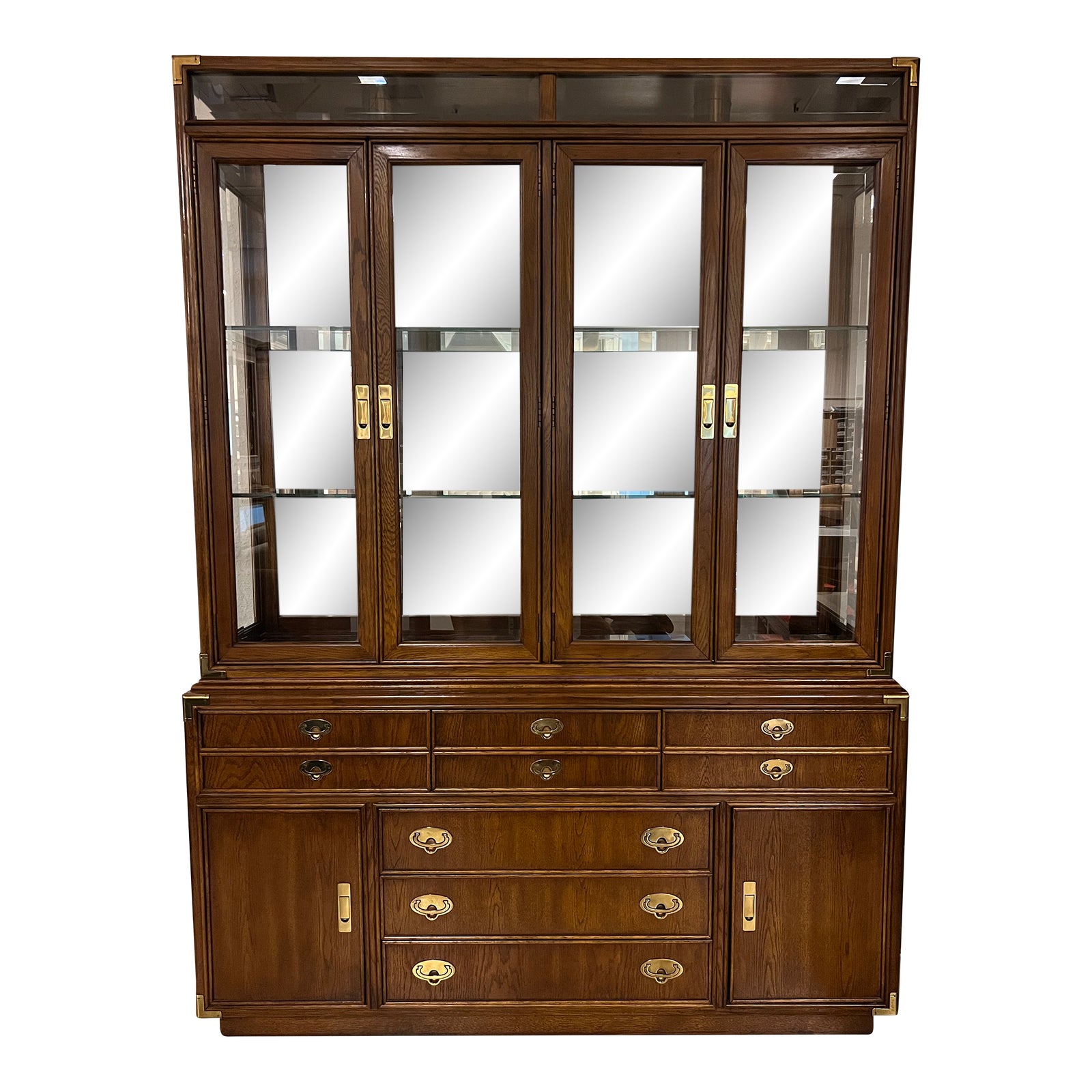 Vintage Lexington Campaign Style Two Piece China Cabinet